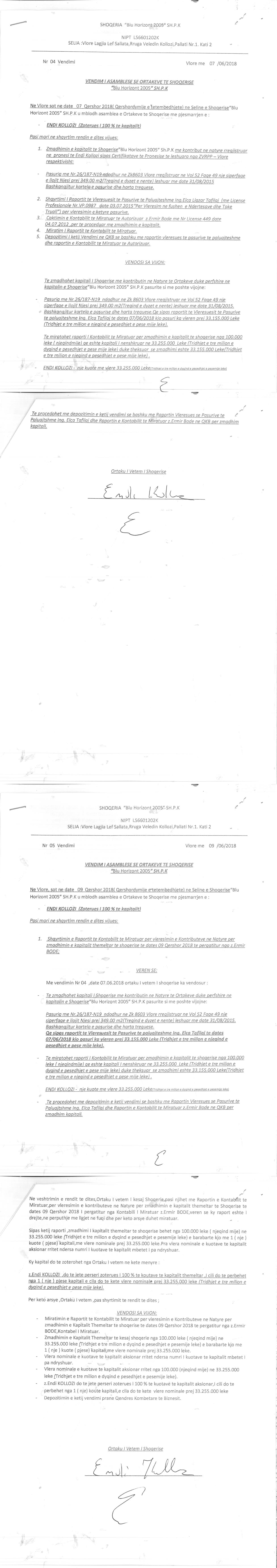 Vendim i Asamblesë së Ortakut të Vetëm për Zmadhimin e Kapitalit datë 07.06.2018