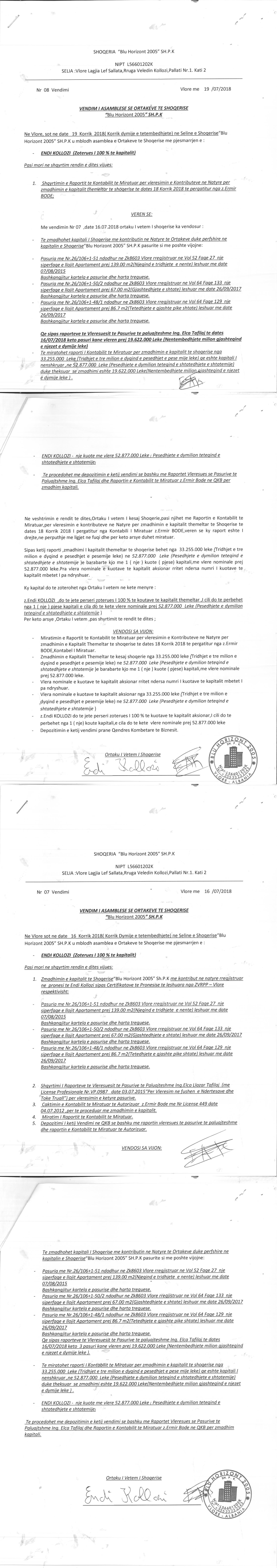 Vendim i Asamblesë së Ortakut të Vetëm për Zmadhimin e Kapitalit datë 19.07.2018