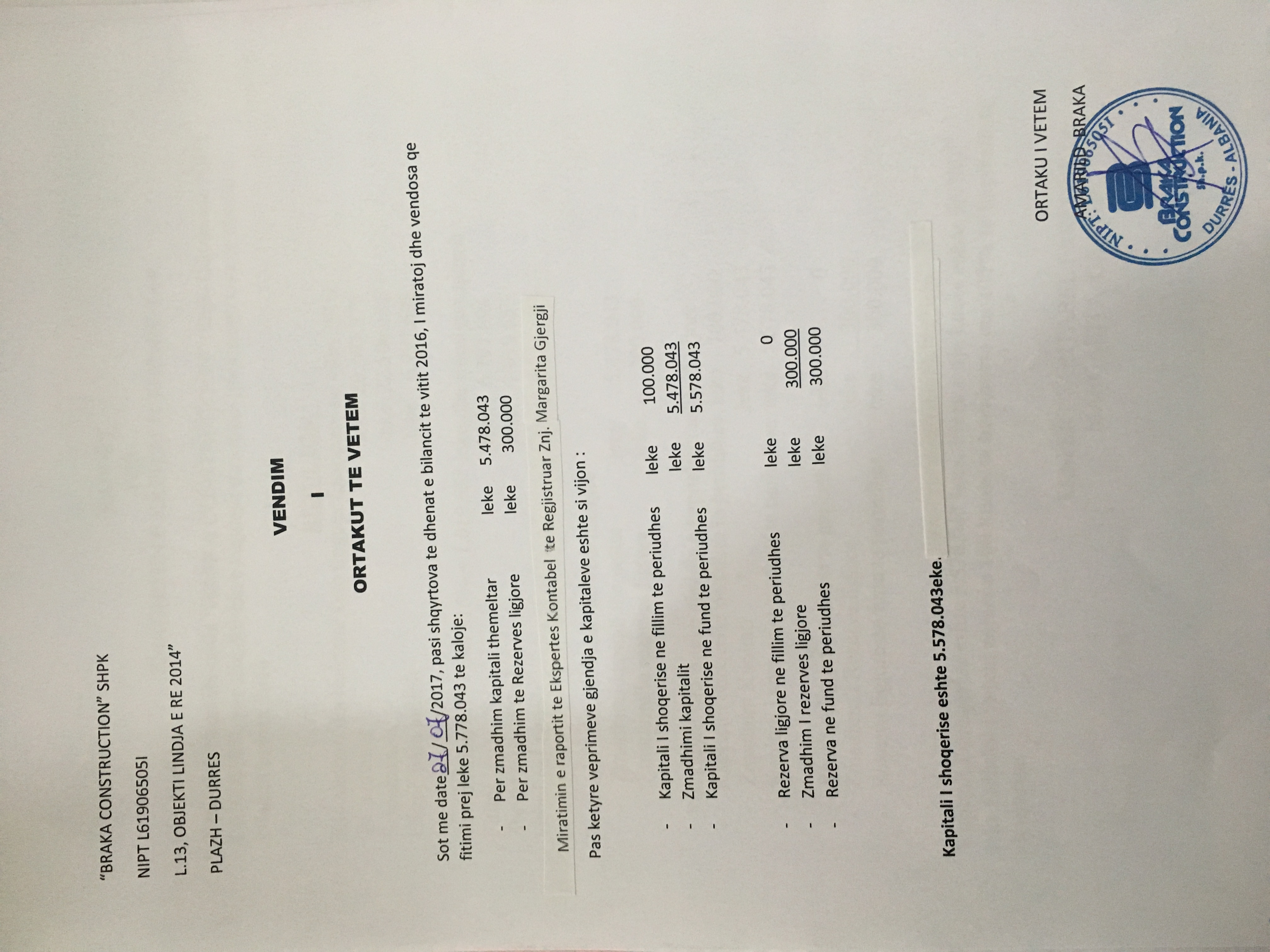 → Ekstrakti Historik i Regjistrit Tregtar date 25.05.2023 → Akt themelimi dhe Statuti i Shoqerise → Vendim i Ortakut te Vetem, Zmadhim Kapitali date 27.07.2017 → Vendim i Ortakut te Vetem, Zmadhim Kapitali date 29.07.2018 → Vendim i Ortakut te Vetem, Zmadhim Kapitali date 30.06.2019 → Vendim i Ortakut te Vetem, Zmadhim Kapitali date 28.06.2020 → Ekstrakt Historik i Regjistrit Tregtar date 04.04.2025 → Vendim i Ortakut të Vetëm për Zmadhimin e Kapitalit datë 01.07.2023 → Vendim i Ortakut të Vetëm për Zmadhimin e Kapitalit datë 30.06.2024 |