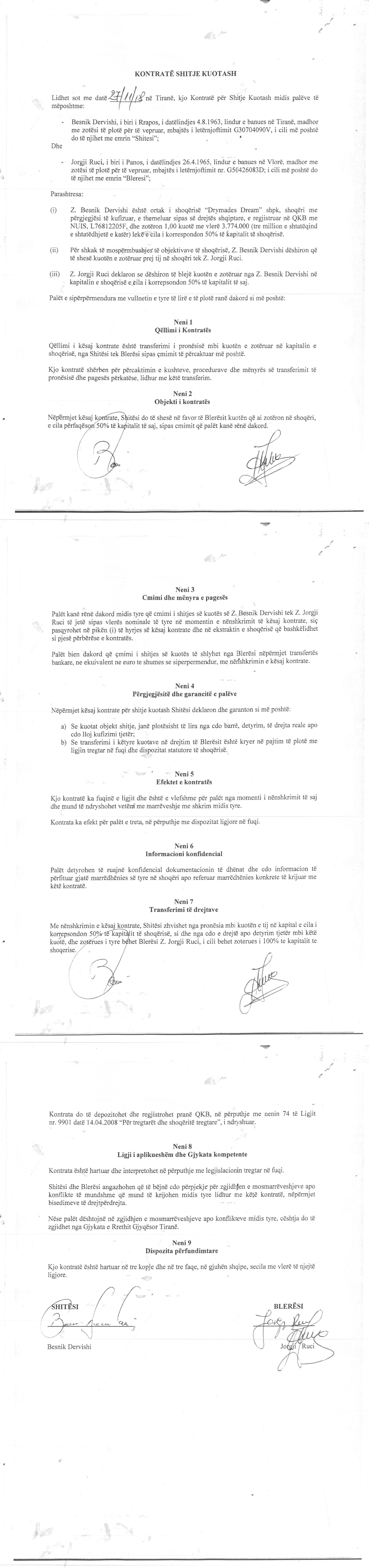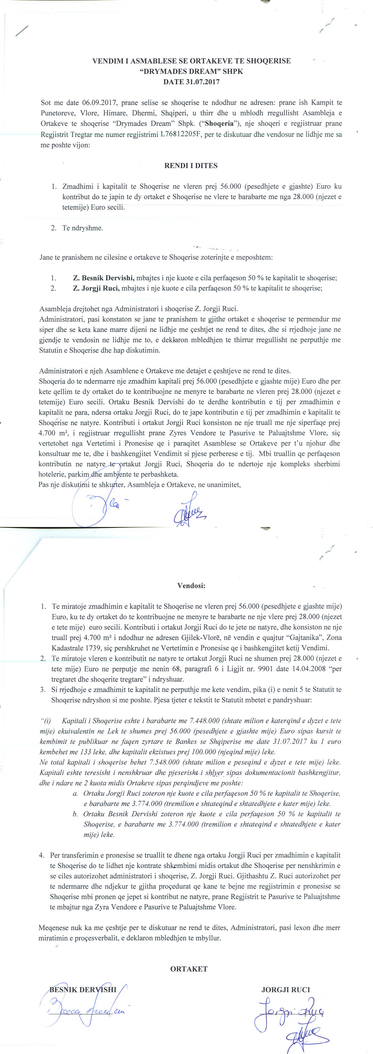 → Ekstrakti Historik I Regjistrit Tregtar date 15.10.2020 → Statuti I Shoqerise → Kontrate e Shitjes se Kuotave date 27.11.2018 → Kontrate Shitblerje te Kuotave date 09.12.2018 → Kontrate Shitblerje te Kuotave date 28.12.2018 → Kontrate e Shkembimit te Pasurise date 15.03.2019 → Ekstrakt Historik i Regjistrit Tregtar date 25.10.2024 → Vendim i Asamblesë së Ortakëve për Zmadhim Kapitali datë 06.09.2017 → Ekstrakt Historik i Regjistrit te Pronareve Perfitues depozituar date 17.03.2021 |