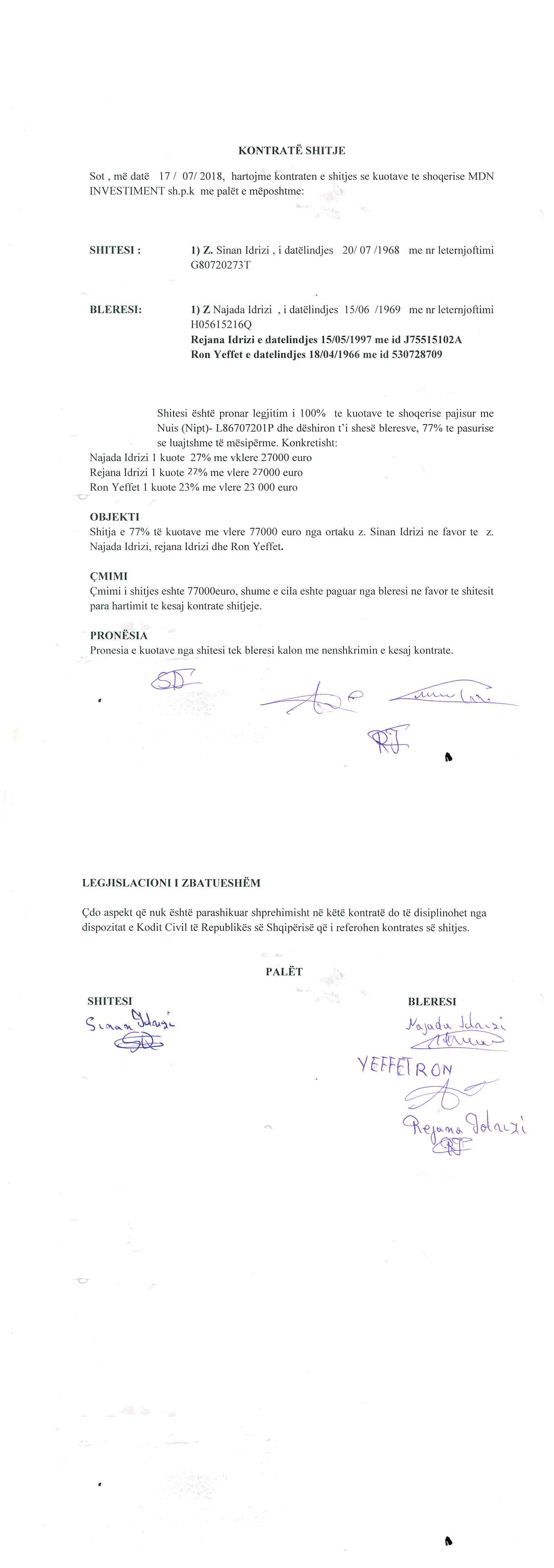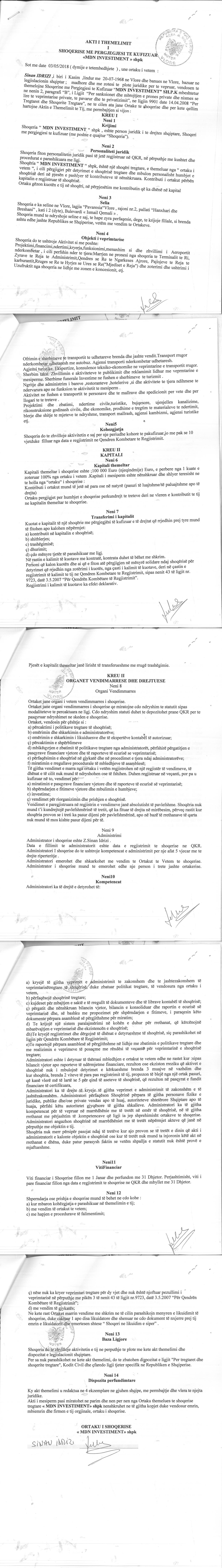 | Emërtime të tjera Tregtare: | " MDN INVESTIMENT " |
