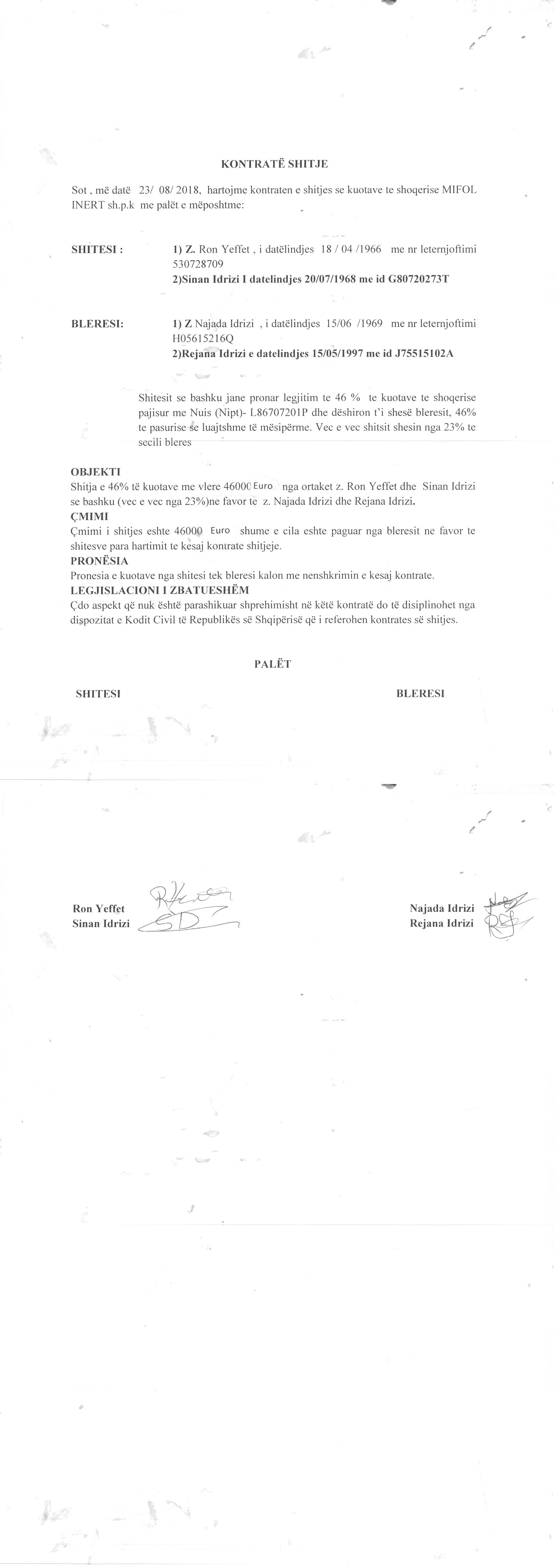 → Ekstrakt historik i regjistrit tregtar 07.09.2022 → Akti i themelimit → Marreveshje siguruese 03.05.2019 → Kontrate shitje 23.08.2018 → Kontrate shitje 17.07.2018 → Ekstrakt Historik i Regjistrit Tregtar date 24.03.2025 |