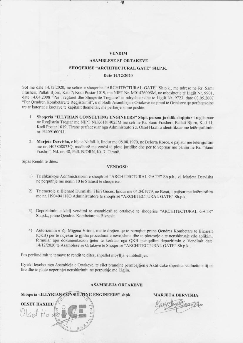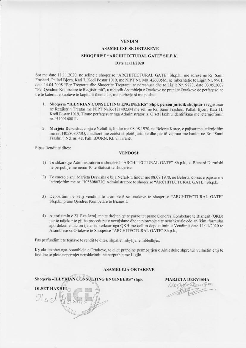 → Ekstrakti Historik i Regjistrit Tregtar date 28.04.2022 → Akt themelimi i Shoqerise → Statuti i Shoqerise i Ndryshuar date 21.09.2020 → Vendim i Asamblese se Pergjithshme date 21.09.2020 → Vendim i Asamblese se Pergjithshme date 11.11.2020 → Vendim i Asamblese se Pergjithshme date 14.12.2020 |