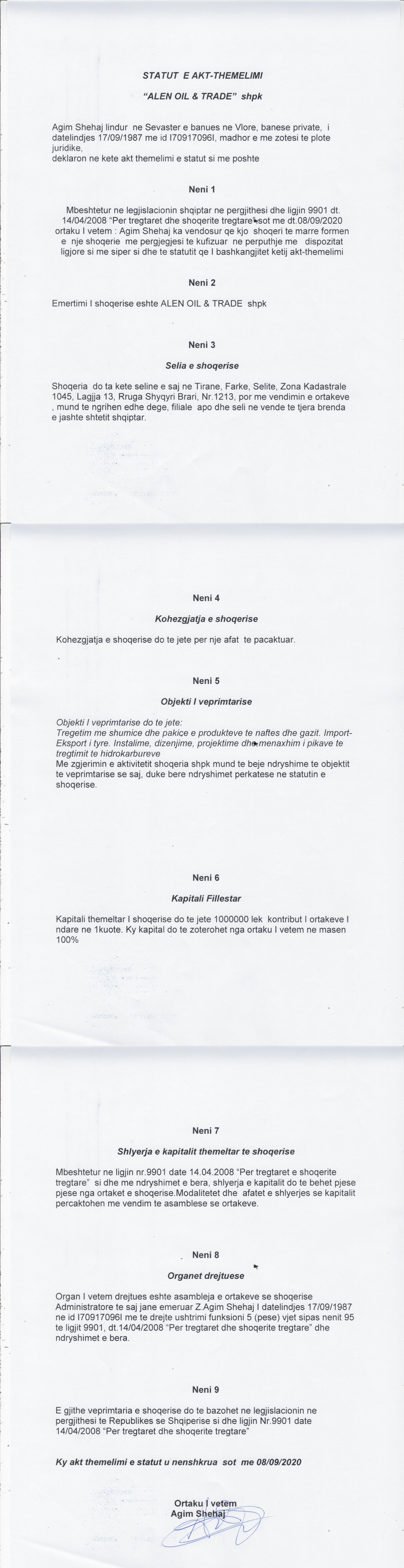 → Ekstrakti Historik I Regjistrit Tregtar date 11.09.2020 |