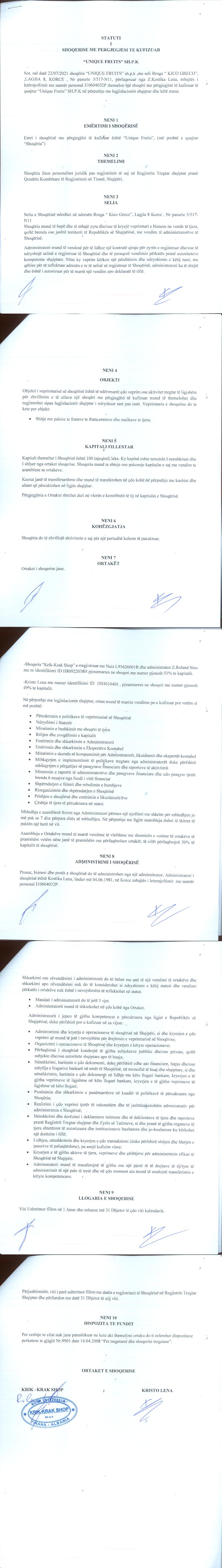 → Ekstrakt Historik i Regjistrit Tregtar, date 17.02.2022 → Statuti i shoqerise, date 22.07.2021 → Ekstrakt i Thjeshte i Regjistrit Tregtar, (KRIK-KRAK SHOP), date 18.02.2022 |