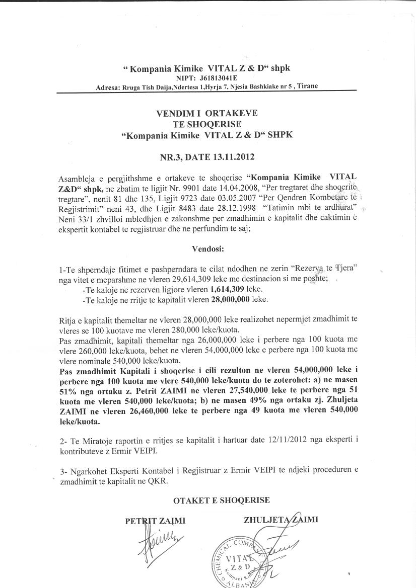 | Kapitali Themeltar(Lekë): | 54 000 000,00 |