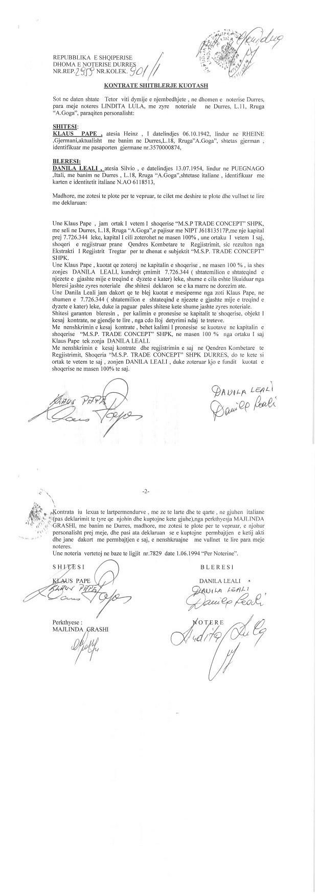 | Emërtime të tjera Tregtare: | M.S.P. TRADE CONCEPT |