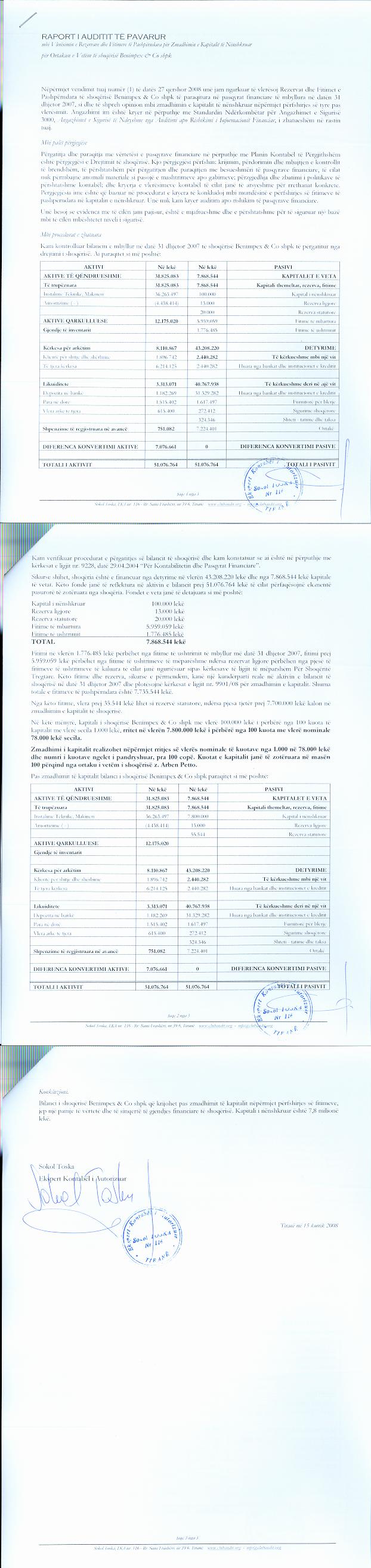 → Ekstrakti Historik i Regjistrit Tregtar date 18.03.2023 → Akt themelimi dhe Statuti i Shoqerise → Vendim i Ortakut te Vetem, Zmadhim Kapitali date 10.06.1996 → Raport i Vecante i Ekspertit Kontabel, Zvogelim Kapitali date 28.01.2002 → Raport i Auditit te Pavarur, Zmadhim Kapitali date 15.07.2008 → Vendim i Ortakut te Vetem, Zmadhim Kapitali date 30.06.2011 → Kontrate Shitje Kuotash date 22.05.2012 → Urdher per Venie Sekuestro date 21.10.2013 → Urdher per Heqje Sekuestro date 29.10.2013 → Urdher per Venie Sekuestro date 05.03.2014 |