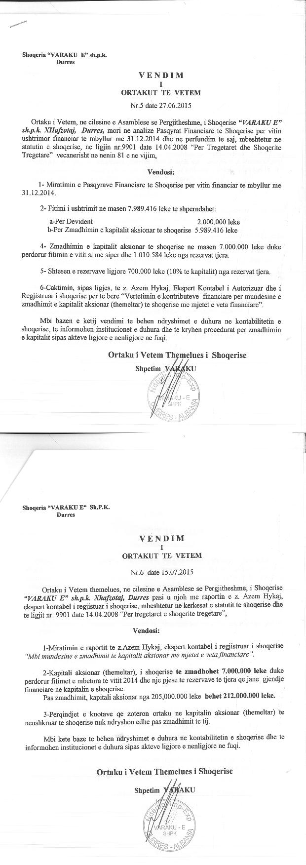 → Ekstrakt historik i regjistrit tregtar 23.04.2021 → Kontrate pengu 24.02.2014 → Vendim i ortakut te vetem per rritjen e kapitalit 30.06.2009 → Vendim i ortakut te vetem per rritjen e kapitalit 27.06.2015 → Vendim i ortakut te vetem per rritjen e kapitalit 28.06.2018 → Vendim i ortakut te vetem per zmadhimin e kapitalit 28.06.2014 → Vendim i ortakut te vetem per zmadhimin e kapitalit 30.06.2016 → Ekstrakt Historik i Regjistrit Tregtar date 17.06.2025 |