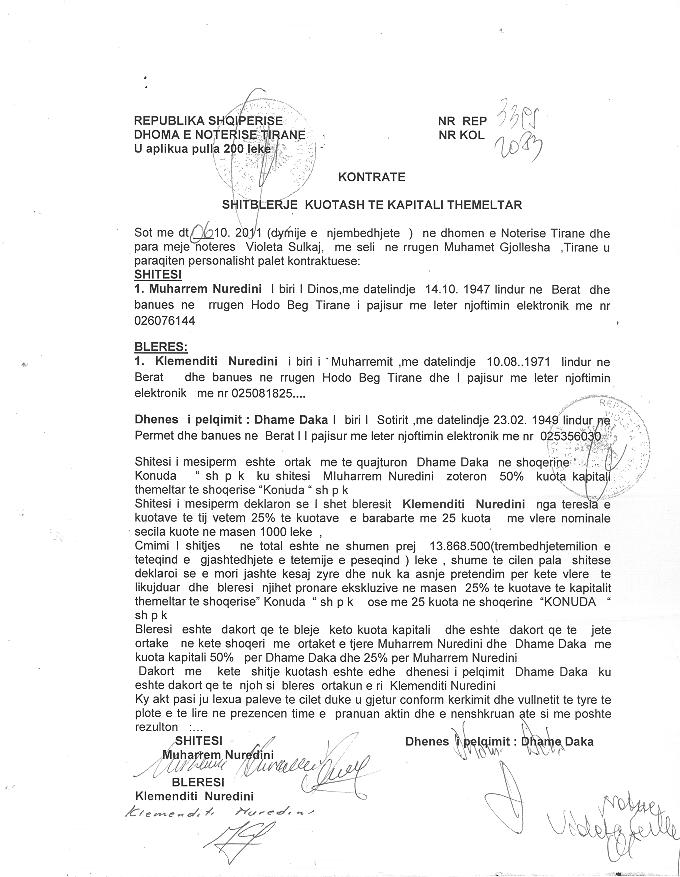 nga Z. Muharrem Nuredini, ne shopqerine “ KONUDA”sh.p.k, me