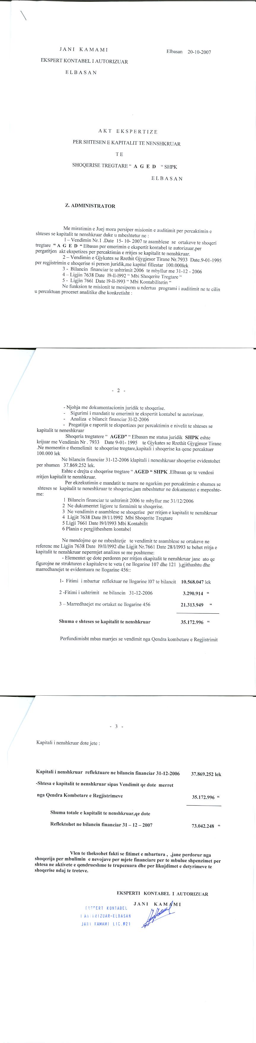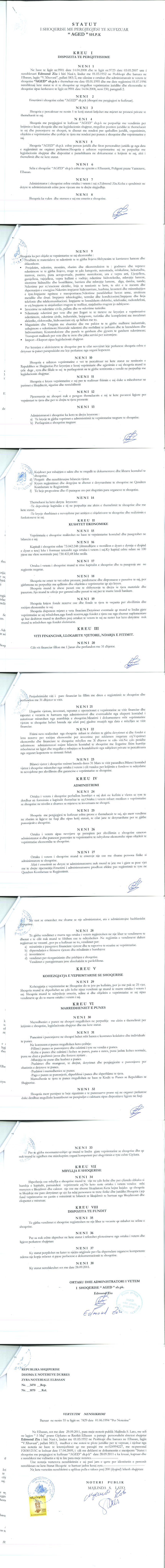 → Ekstrakti Historik i Regjistrit Tregtar date 28.10.2021 → Statuti i Shoqerise → Akti i Ekspertizes date 20.10.2007 → Vendim i ortakut te vetem date 09.08.2019 |