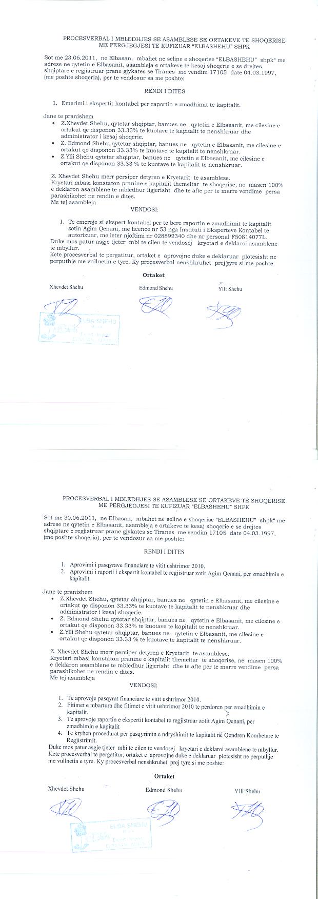 → Ekstrakti Historik i Regjistrit Tregtar date 23.02.2022 → Statuti i Shoqerise → Vendim i asamblese se ortakeve date 23.06.2011 → Vendim i asamblese se ortakeve date 25.05.2016 |