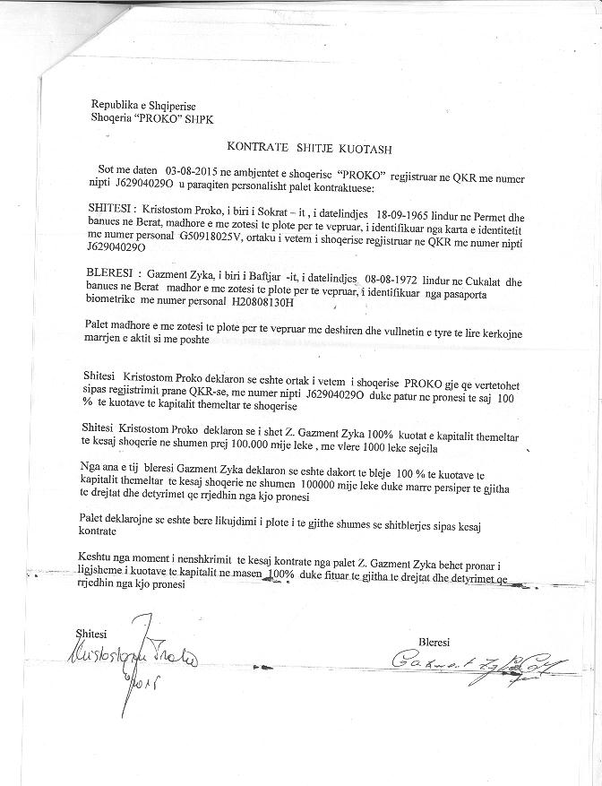 → Ekstrakti Historik i Regjistrit Tregtar date 16.11.2021 → Statuti i Shoqerise → Kontrate e Shitjes se Kuotave date 03.08.2015 → Vendimi i Asamblese se Pergjithshme date 10.09.2019 |