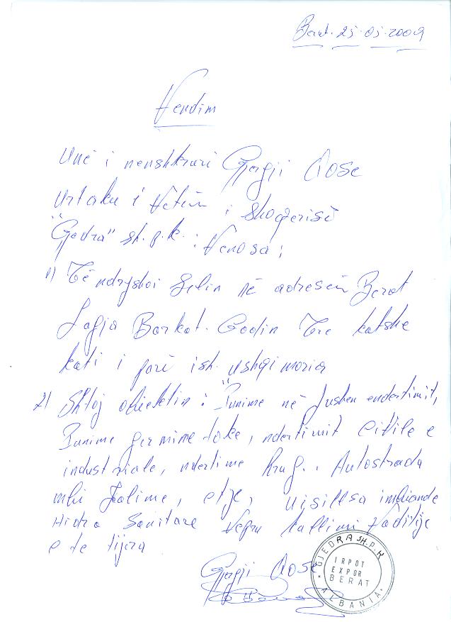 → Ekstrakt Historik i Regjistrit Tregtar, date 18.11.2021 → Vendimi i Ortakut te vetem, date 25.09.2003 → Vendimi i Ortakut te vetem, date 30.07.2009 → Vendimi e ortakut te vetem, date 04.07.2011 → Statuti i shoqerise, date 04.07.2011 → Vendimi i Ortakut te vetem, date 25.09.2019 → Ekstrakt Historik i Regjistrit Tregtar date 10.10.2023 → Dëshmi Trashëgimie Ligjore datë 03.06.2022 → Ekstrakt Historik i Regjistrit Tregtar date 17.04.2024 → Të dhënat e Investimit, Financimet Nga IPARD - Aksesuar nga Agjencia për Zhvillim Bujqësor dhe Rural AZHBR datë 17.04.2024 |