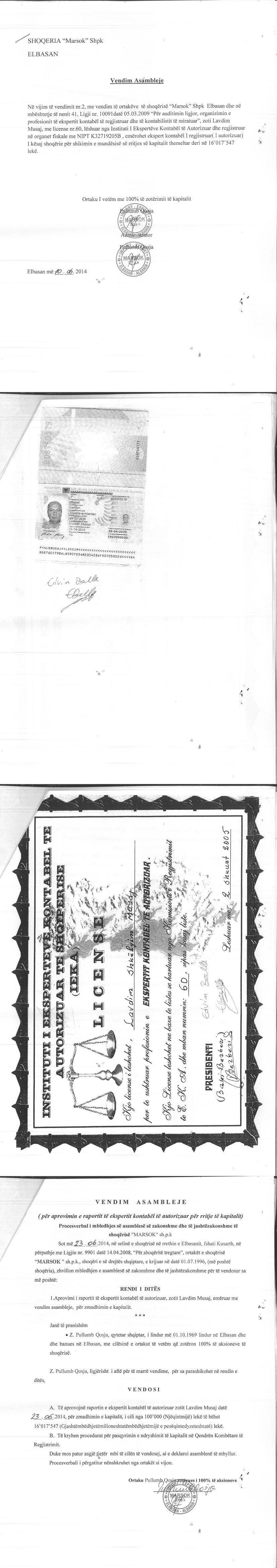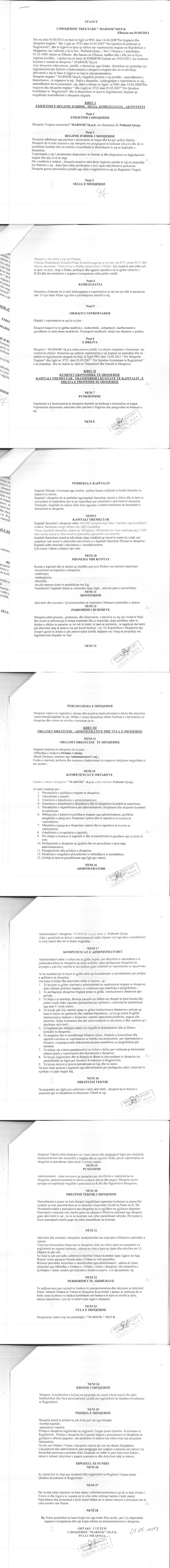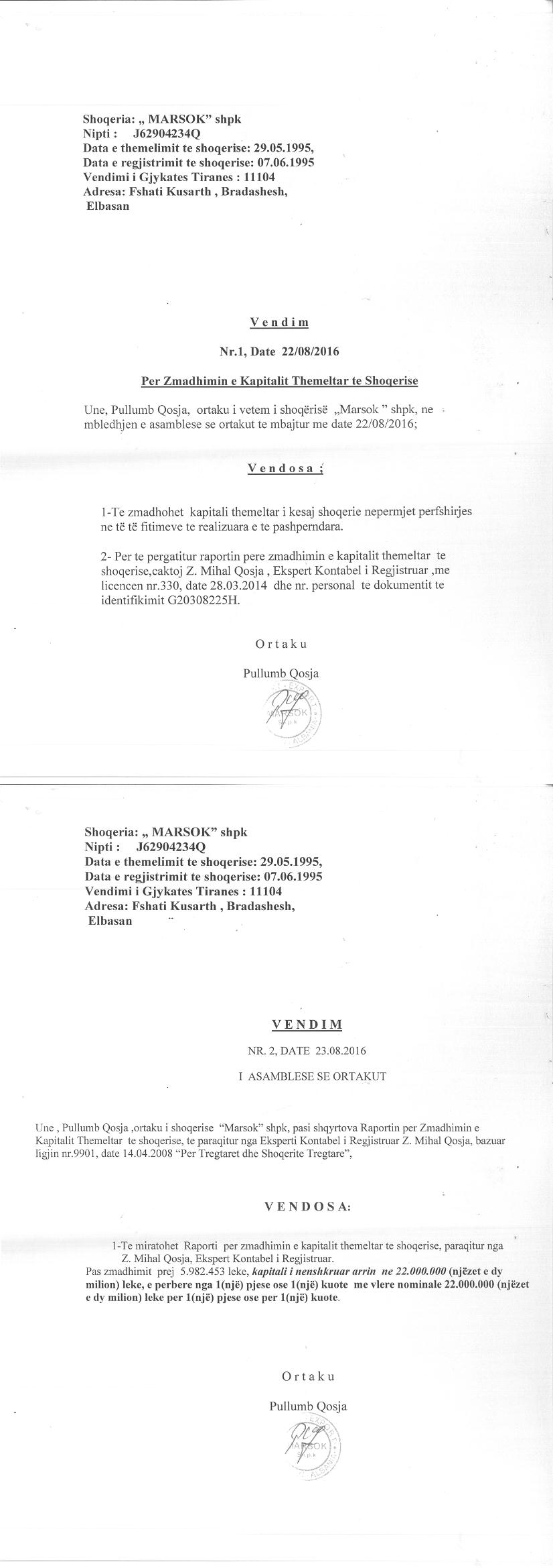 → Ekstrakti Historik i Regjistrit Tregtar date 17.11.2021 → Statuti i Shoqerise → Vendim i Asamblese se Pergjithshme per rritjen e kapitalit date 23.06.2014 → Vendim i Asamblese se Pergjithshme per rritjen e kapitalit date 23.08.2016 → Vendim i Asamblese se Pergjithshme per rritjen e kapitalit date 26.06.2017 |