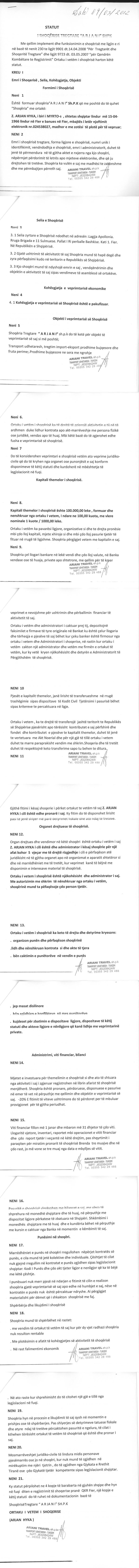 → Ekstrakti Historik i Regjistrit Tregtar date 21.12.2021 → Statusi fillestar i shoqerise dhe dokumneta te ndryshem → Statuti i Shoqerise |
