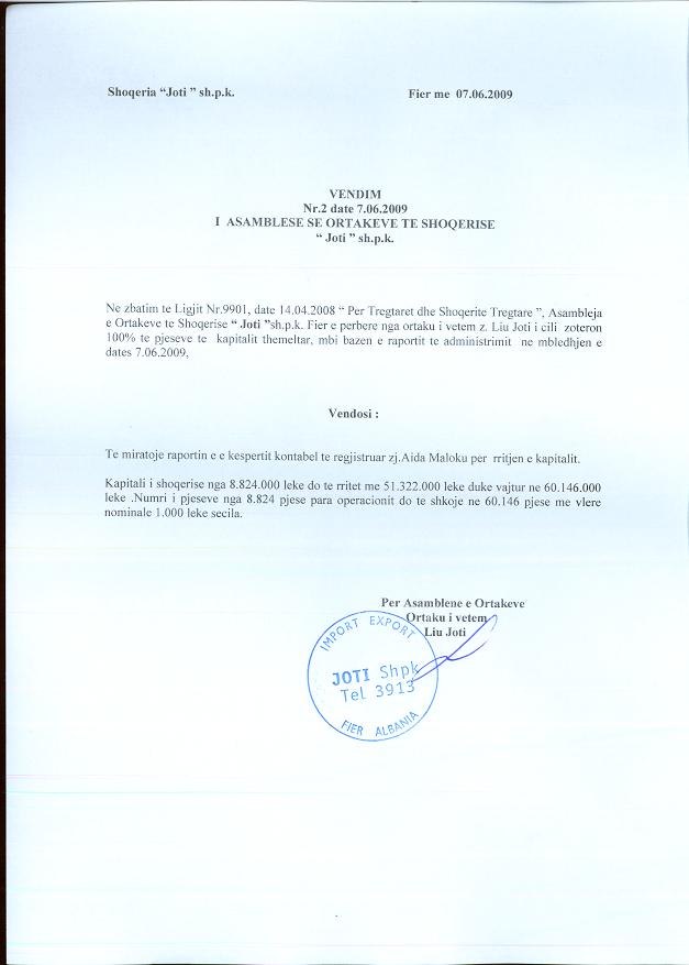 JOTI ( shoqeria e perthithur "JOTI SHA 2010" - L13818401D)