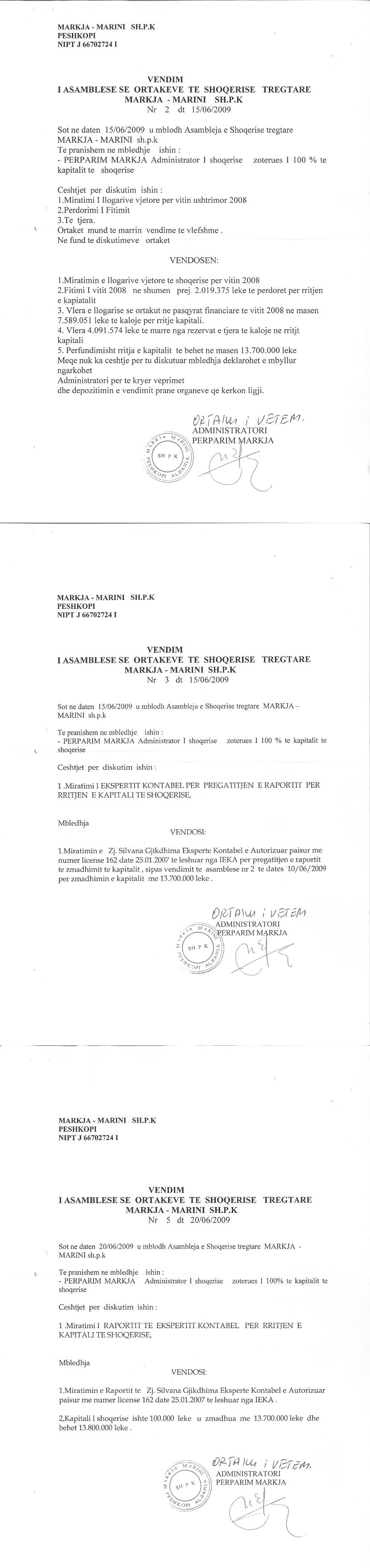 → Ekstrakti Historik i Regjistrit Tregtar date 15.03.2023 → Akt themelimi dhe Statuti i Shoqerise → Vendim i Ortakut te Vetem, Zmadhim Kapitali date 20.06.2009 |