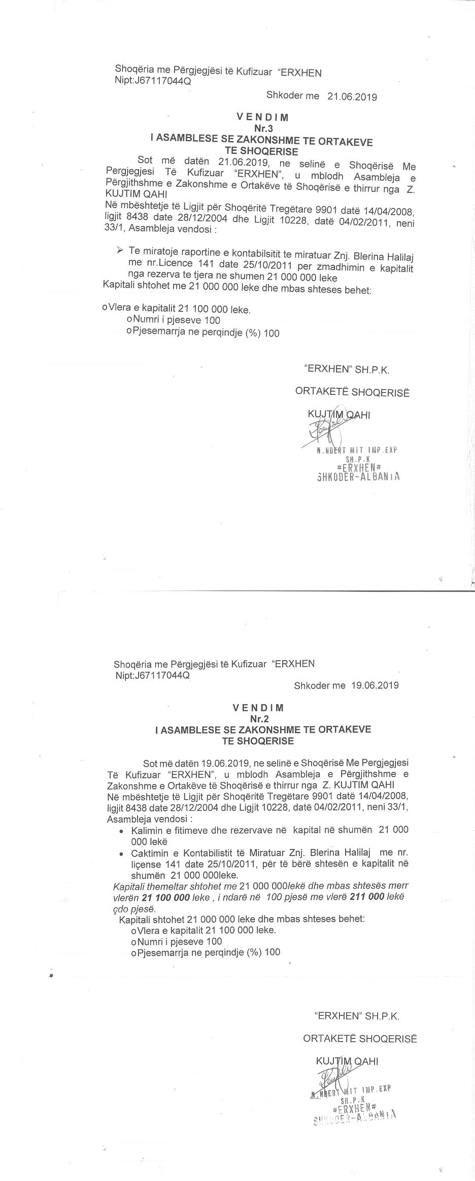 → Ekstrakti Historik i Regjistrit Tregtar date 05.11.2021 → Statuti i Shoqerise dhe vendimi per ndryshimin e zoteruesit → Vendim i Asamblese se Pergjithshme date 21.06.2019 |