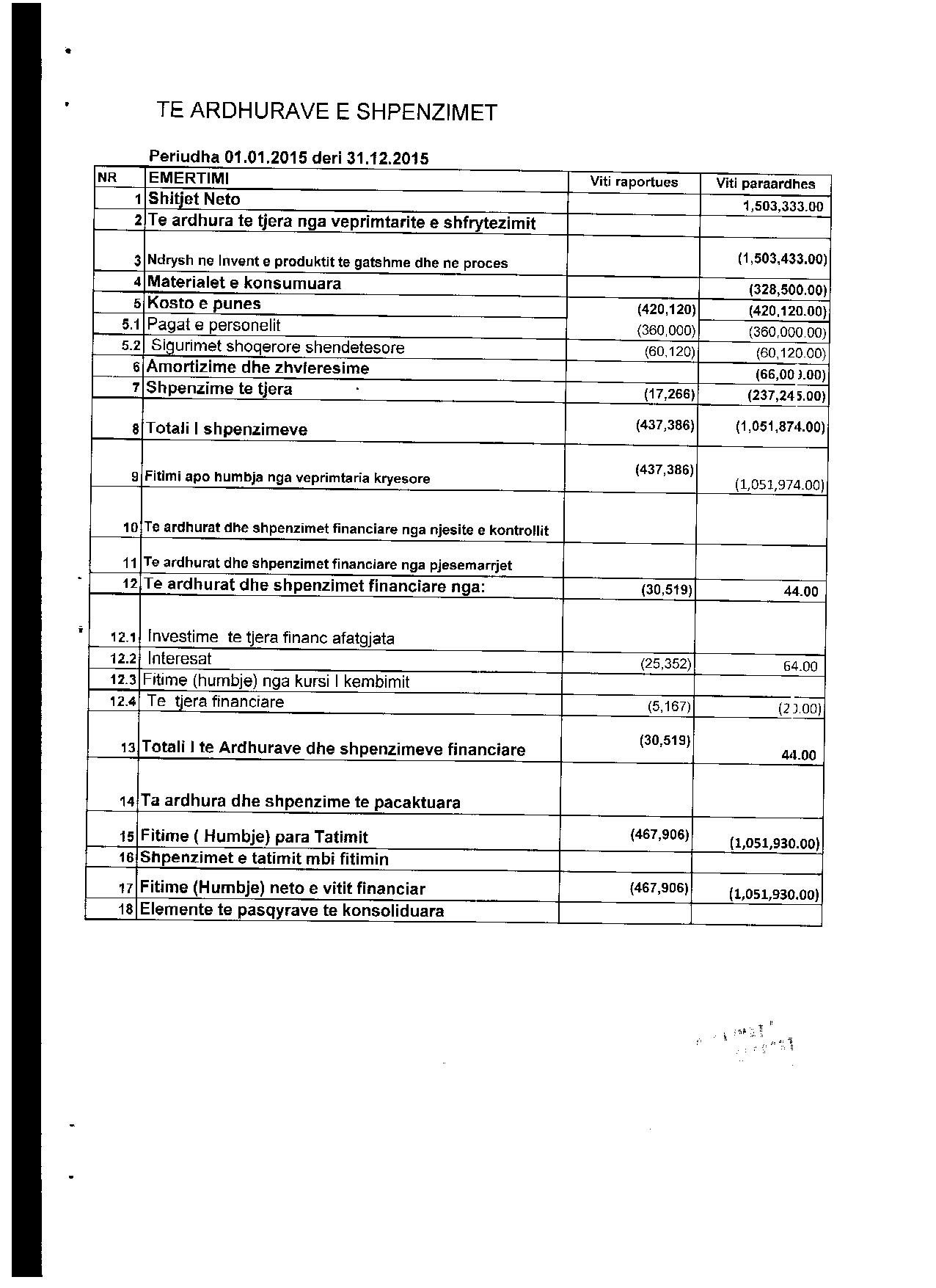 -467 906,00 Fitimi para Tatimit(Lekë) 2014: -1 051 930,00 Fitimi para Tatimit(Lekë) 2013: -577 443,00 Fitimi para Tatimit(Lekë) 2012: 872 880,00 Fitimi para Tatimit(Lekë) 2011: 2 049 084,00 Fitimi para Tatimit(Lekë) 2010: 1 695 660,00 Fitimi para Tatimit(Lekë) 2009: 1 723 483,00 Fitimi para Tatimit(Lekë) 2008: 1 412 308,00 Fitimi para Tatimit(Lekë) 2007: 980 008,00 |