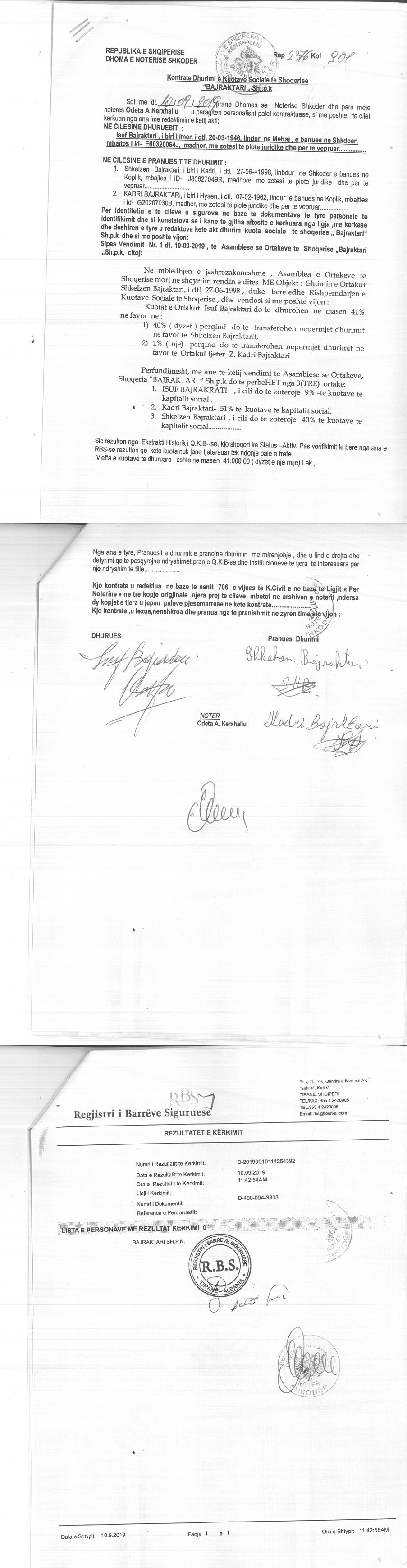 → Ekstrakti Historik i Regjistrit Tregtar date 18.11.2021 → Statuti i Shoqerise → Kontrate e dhurimit te kuotave date 10.09.2019 |