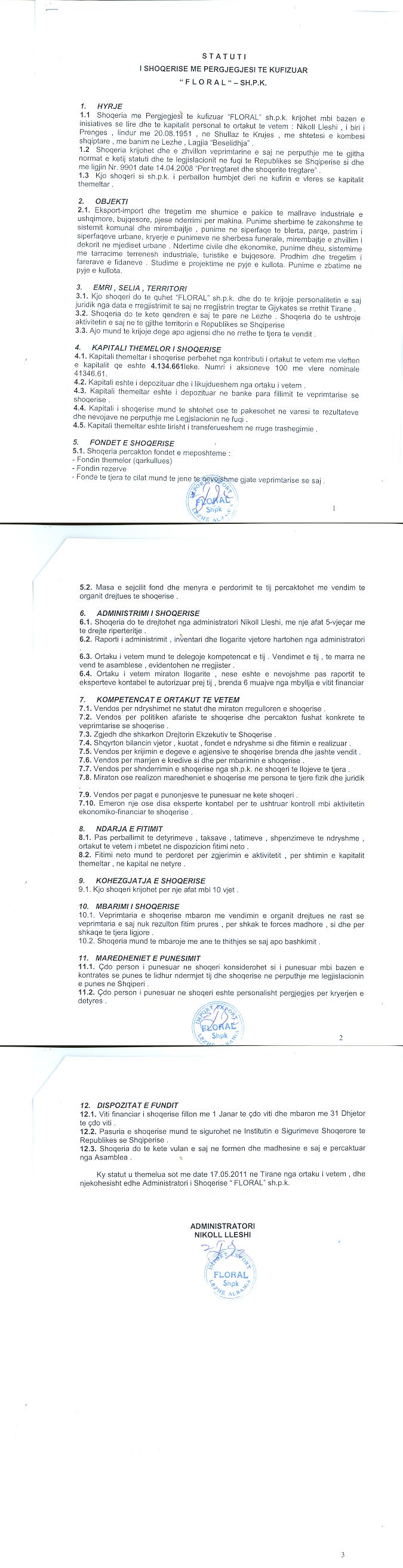 Forma ligjore: Shoqëri me Përgjegjësi të Kufizuar SH.P.K