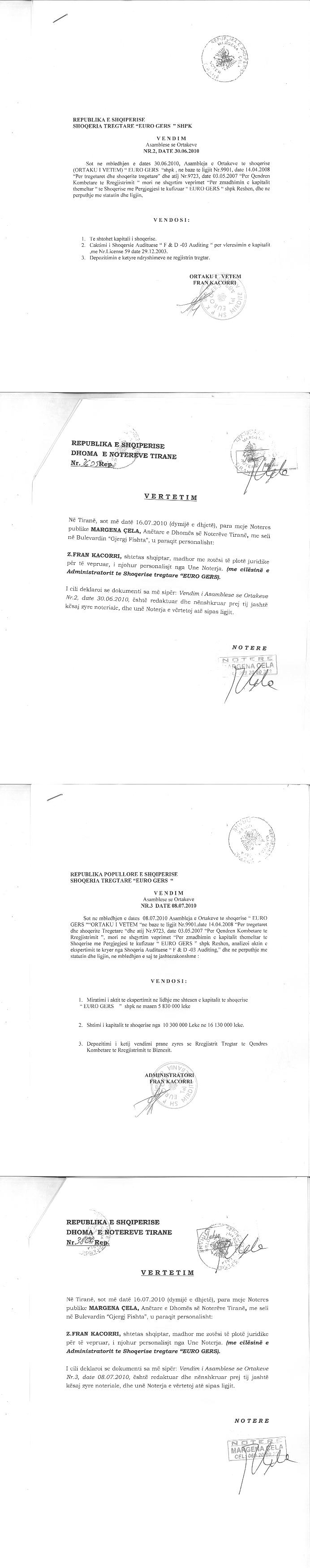 → Ekstrakti Historik i Regjistrit Tregtar date 29.10.2021 → Statuti i Shoqerise dhe vendimi per rritjen e kapitalit → Vendim i Asamblese se Pergjithshme per rritjen e kapitalit date 30.06.2010 |