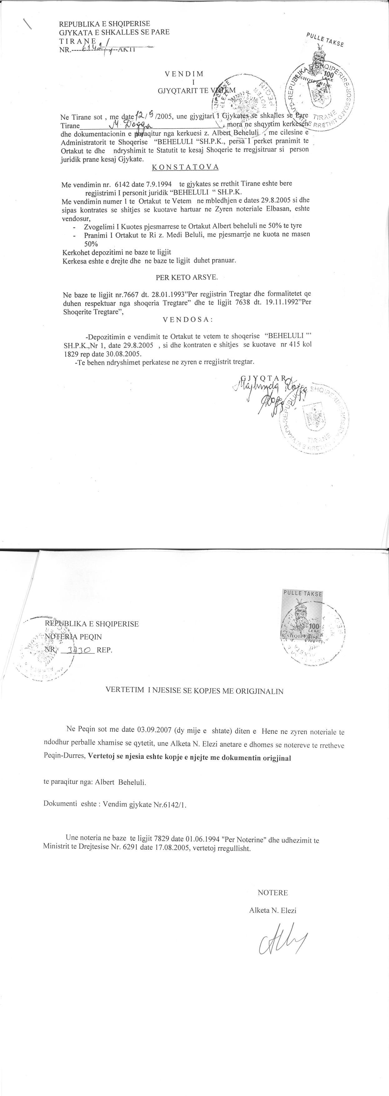 Vendim I Gjykates se Shkalles se Pare (2005)