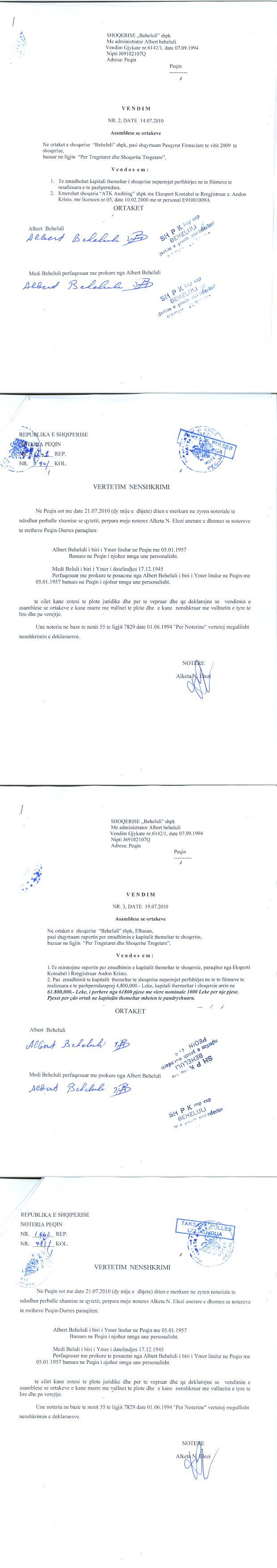 Akte. Tjetërsim Kapitali: Ekstrakti Historik i Regjistrit Tregtar date 25.11.2021