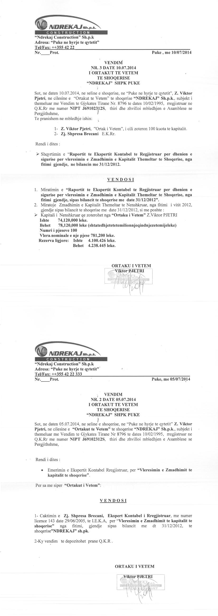 → Ekstrakt historik i regjistrit tregtar 17.04.2021 → Akti i themelimit → Vendimi i asamblese se ortakeve per zmadhimin e kapitalit 04.10.2016 → Vendim i asamblese se ortakeve per zmadhimin e kapitalit 01.12.2017 → Kontrate dhurimi 14.08.2000 → Vendim i ortakut te vetem per zmadhimin e kapitalit 10.07.2014 |