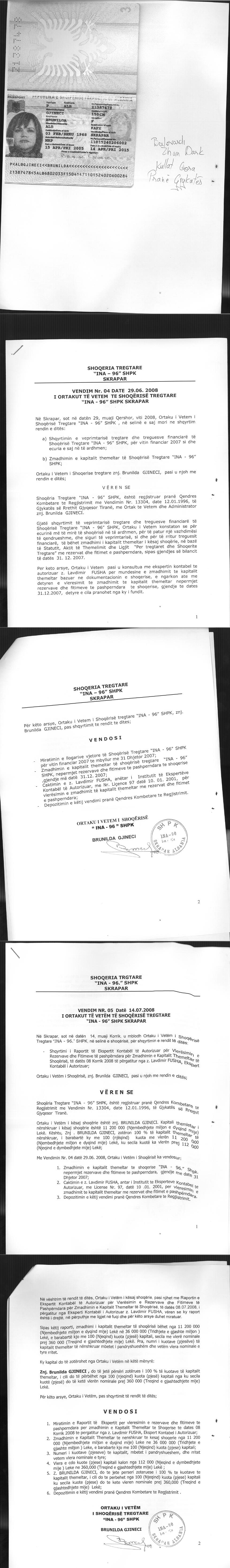 → Ekstrakt historik i regjistrit tregtar date 26.12.2025 → Akti i themelimit dhe statuti i shoqerise → Vendimi i asamblese se ortakeve per rritjen e kapitalit date 15.11.2006 → Vendim i asamblese se ortakeve per zmadhimin e kapitalit date 29.06.2008 → Vendim i asamblese se ortakeve per zmadhimin e kapitalit date 04.12.2009 → Urdher per vendosjen e sekuestros konservative date 11.03.2013 → Vendim i Gjykates se Rrethit Gjyqesor Tirane date 01.10.2013 → Urdher per vendosjen e sekuestros konservative date 29.03.2016 → Vendimi i asamblese se ortakeve per zvogelimin e kapitalit date 26.06.2020 |