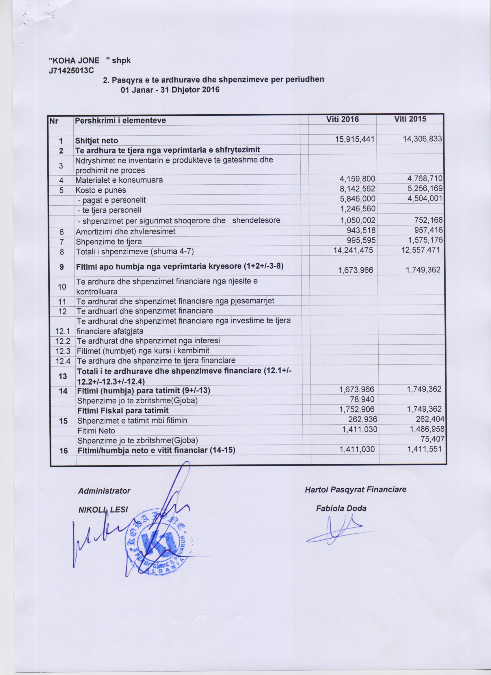 106 005,00 Fitimi para Tatimit(Lekë) 2020: 777 875,00 Fitimi para Tatimit(Lekë) 2019: 1 199 415,00 Fitimi para Tatimit(Lekë) 2018: 1 654 108,00 Fitimi para Tatimit(Lekë) 2017: 1 656 700,00 Fitimi para Tatimit(Lekë) 2016: 1 673 966,00 Fitimi para Tatimit(Lekë) 2015: 1 749 362,00 Fitimi para Tatimit(Lekë) 2014: 1 720 490,00 Fitimi para Tatimit(Lekë) 2013: 657 000,00 Fitimi para Tatimit(Lekë) 2012: 1 629 145,00 Fitimi para Tatimit(Lekë) 2011: 2 641 637,00 |