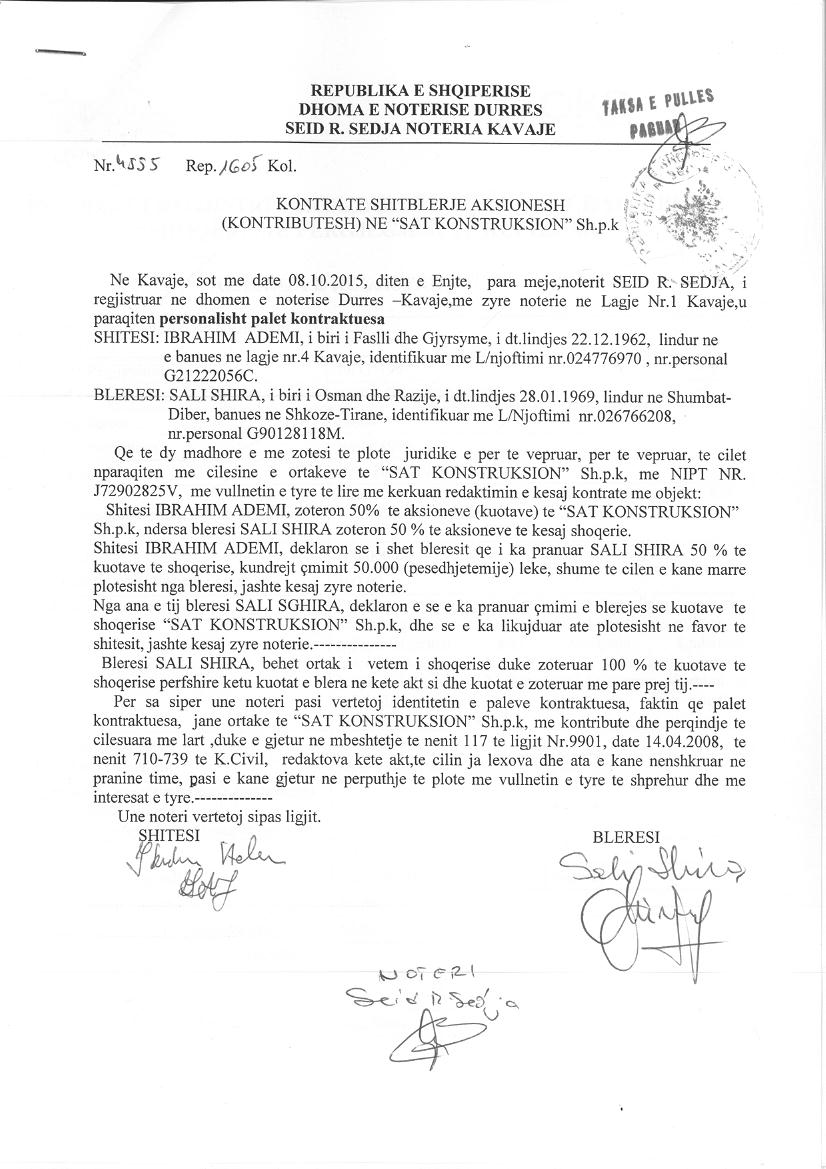 → Ekstrakti Historik i Regjistrit Tregtar date 02.08.2024 → Statuti fillestar i Shoqerise dhe dokumenta te ndryshem → Statuti i perditesuar i Shoqerise → Kontrate e shitblerjes se aksioneve date 08.10.2015 |