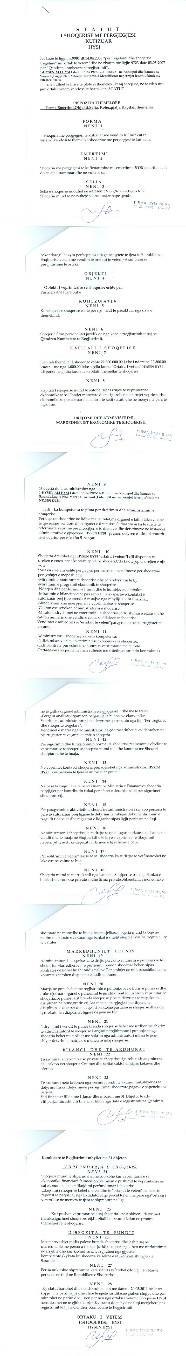 → Ekstrakti Historik i Regjistrit Tregtar date 11.10.2021 → Statuti i Shoqerise → Kontrate e Dhurimit te Kuotave date 19.03.2019 |