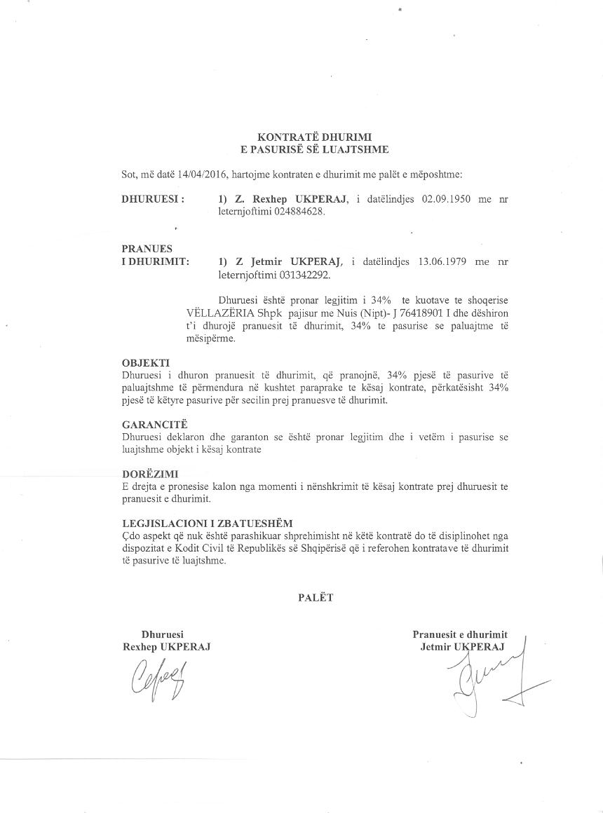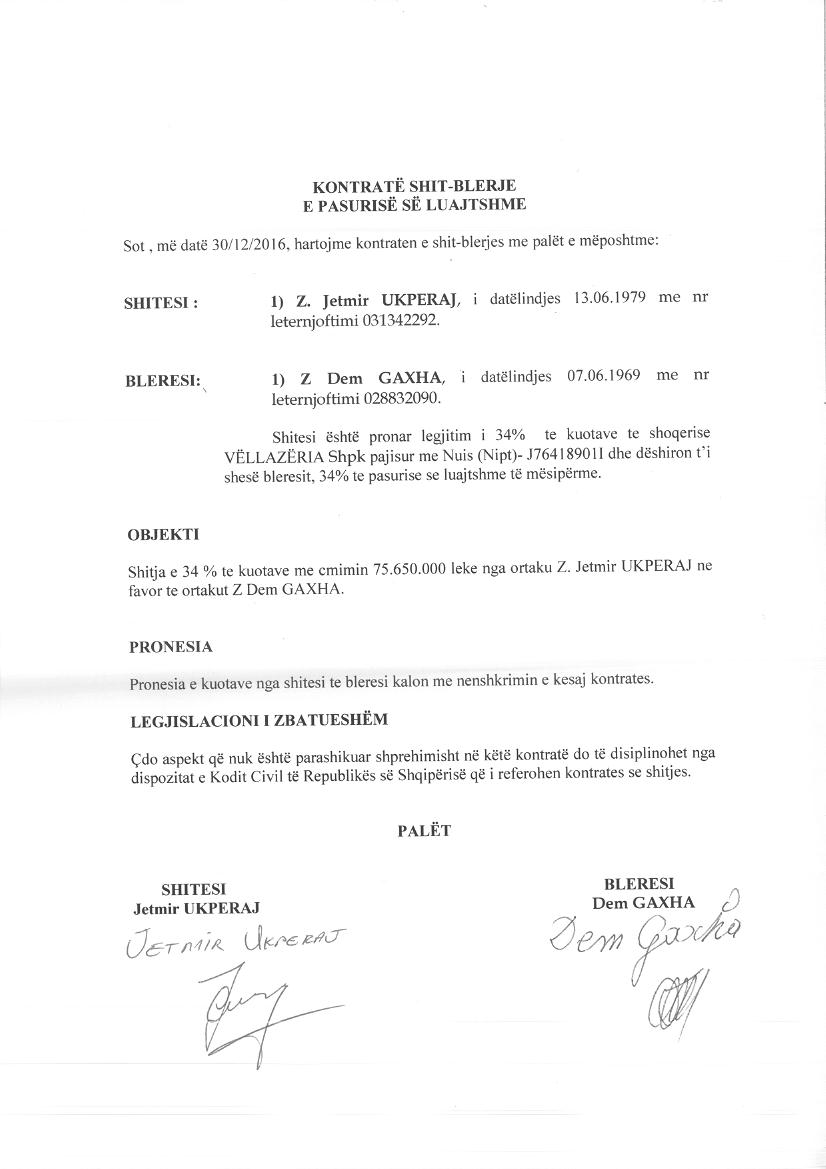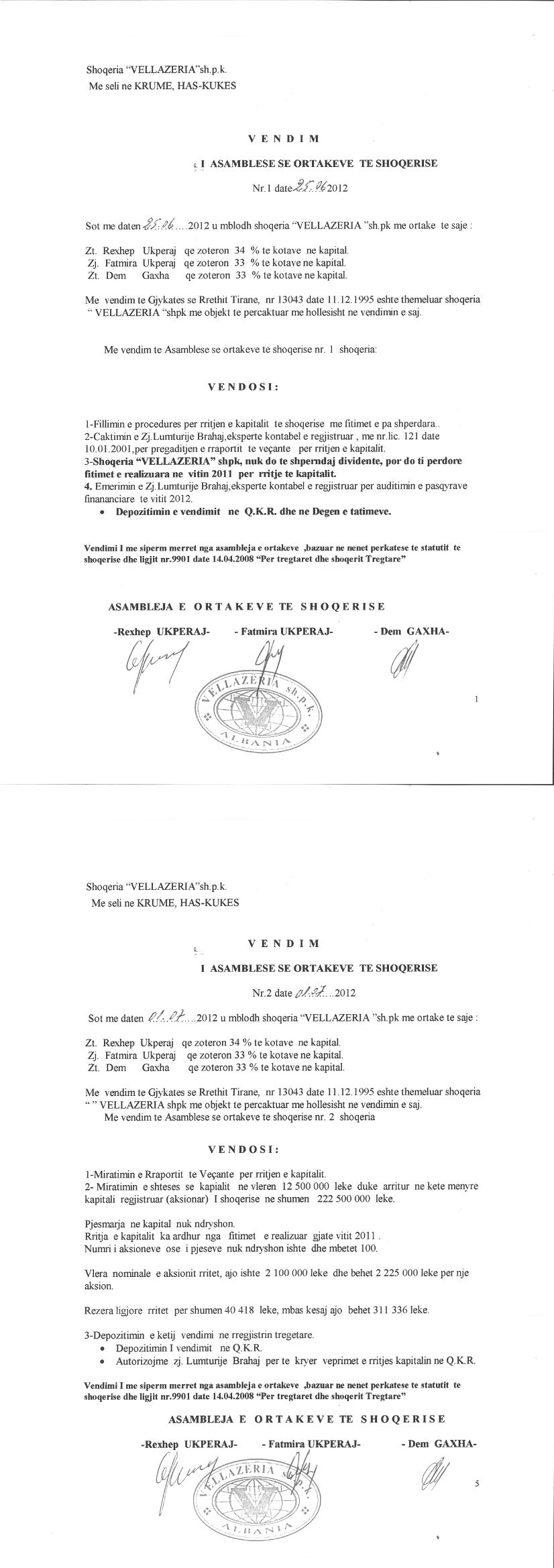 → Ekstrakt historik i regjistrit tregtar 05.07.2021 → Akti i themelimit dhe statuti → Kontrate shit-blerje e pasurive te paluajtshme date 29.12.2017 → Raport i auditorit te pavarur per rritjen e kapitalit date 02.06.2008 → Kontrate shit-blerje kuotash date 04.11.2004 → Vendimi i asamblese se ortakeve dhe kontrata e shitjes se kuotave date 10.04.2008 → Kontrate shit-blerje e pasurise se luajtshme date 30.12.2016 → Kontrate dhurimi e pasurise se luajtshme date 14.04.2016 → Vendimi i asamblese se ortakeve per rritjen e kapitalit date 29.06.2019 → Vendimi i asamblese se ortakeve per rritjen e kapitalit date 25.06.2012 → Vendim i asamblese se ortakeve per rritjen e kapitalit date 05.05.2009 |