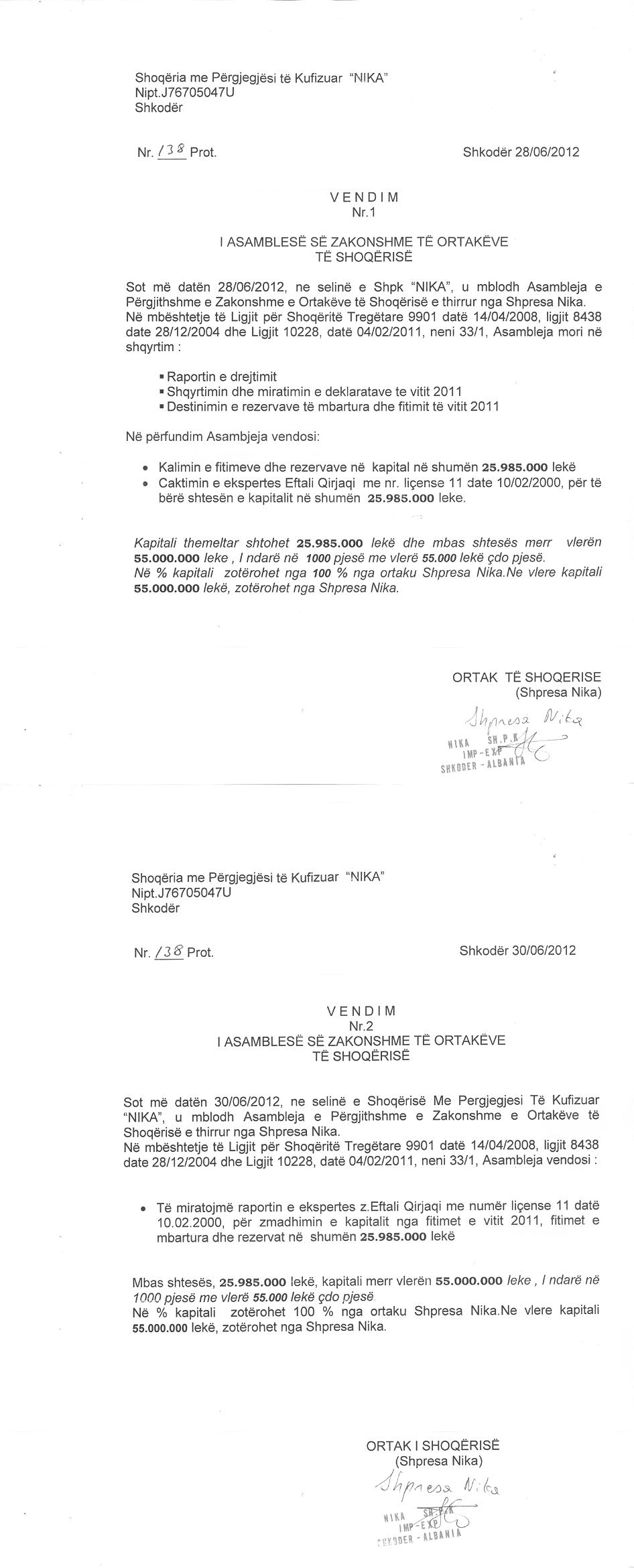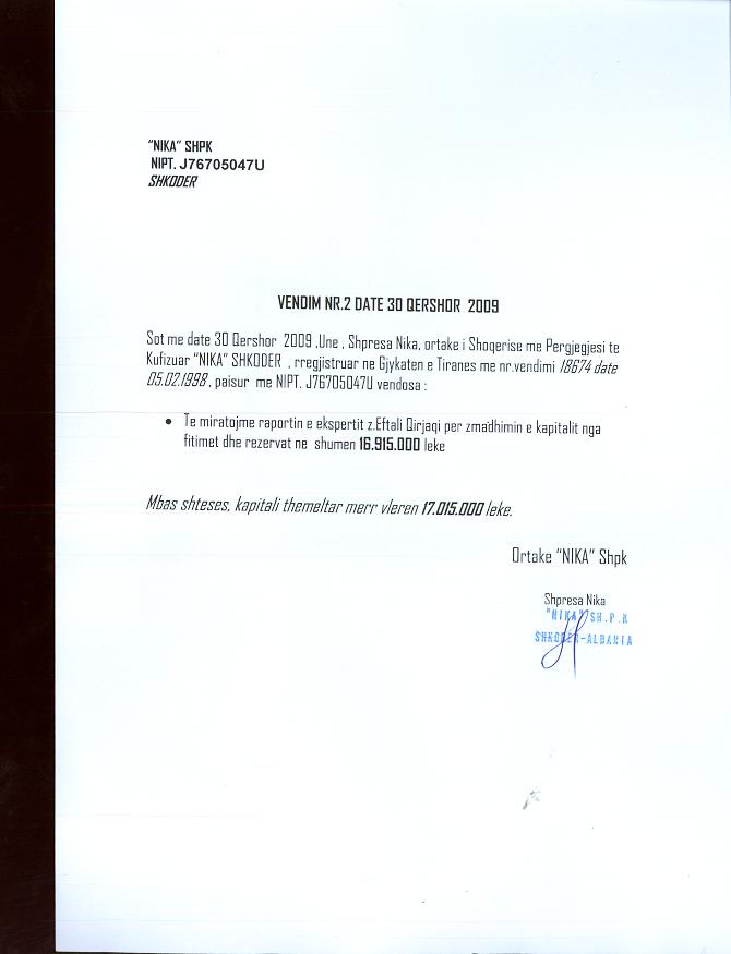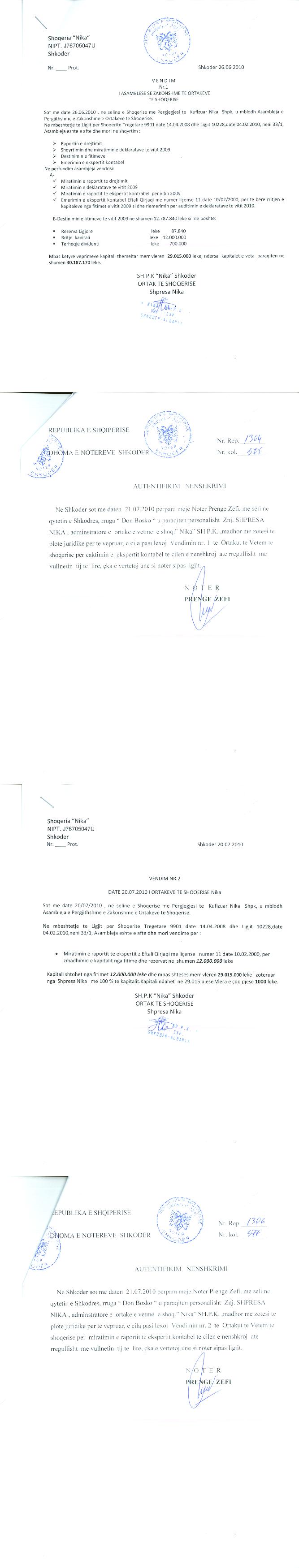 → Ekstrakt historik i regjistrit tregtar 06.06.2022 → Akti i themelimit → Kontrate shitblerje kuotash 20.12.2001 → Vendimi i asamblese se ortakeve per rritjen e kapitalit 26.06.2010 → Vendimi i asamblese se ortakeve per rritjen e kapitalit 28.06.2012 → Vendimi per rritjen e kapitalit 30.06.2009 → Ekstrakti Historik i Regjistrit Tregtar date 03.05.2023 → Ekstrakt Historik i Regjistrit Tregtar date 12.09.2024 → Ekstrakt Historik i Regjistrit Tregtar date 11.12.2024 |