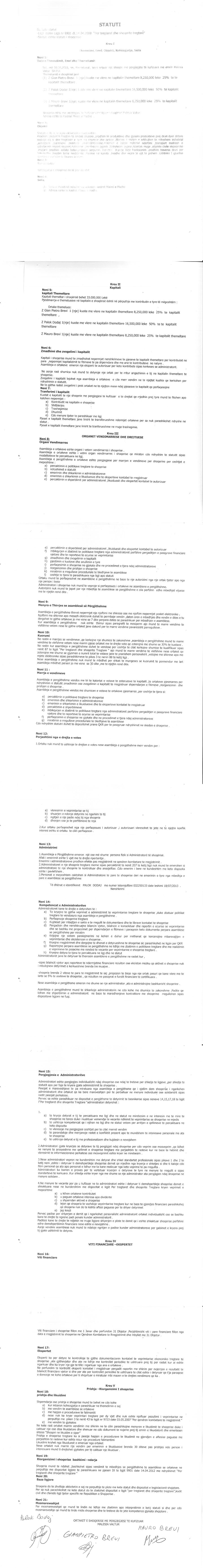 → Ekstrakti Historik i Regjistrit Tregtar date 04.10.2021 → Statuti i Shoqerise → Kerkese per ndryshimin e zoteruesit date 04.09.1999 → Kerkese per ndryshimine zoteruesit date 31.10.2001 → Vendim i Asamblese se Pergjithshme per rritjen e kapitalit date 02.03.2015 → Kontrate e Shitjes se Kuotave date 29.04.2016 → Vendim i Asamblese se Pergjithshme per rritjen e kapitalit date 18.11.2010 |