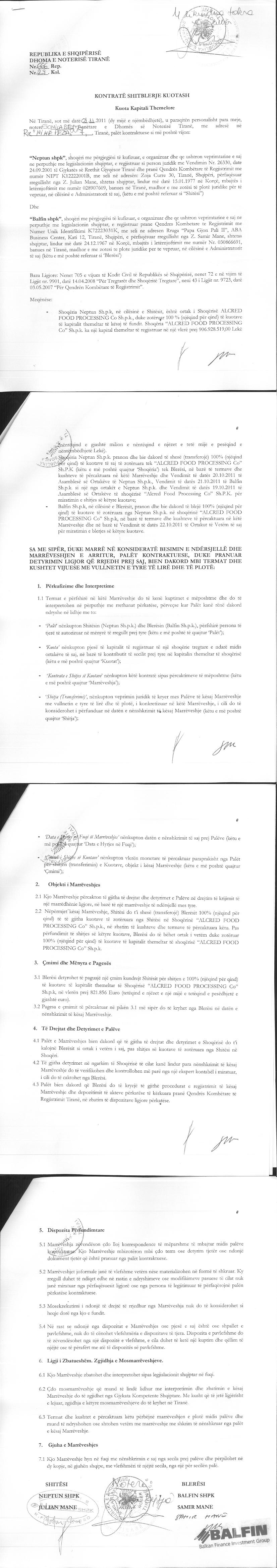 → Ekstrakt Historik i Regjistrit Tregtar date 14.04.2023 → Akt themelimi dhe Statut i Shoqërisë → Kontratë Shitblerje datë 22.11.1999 → Kontratë Shitblerje Kuotash datë 23.04.2002 → Kontratë Dhurimi Kuotash datë 23.04.2002 → Kontratë Dhurimi Kuotash datë 08.11.2002 → Kontratë Shitblerje Kuotash datë 08.11.2002 → Kontratë Shitblerje Kuotash datë 23.12.2003 → Kontratë Shitblerje Kuotash datë 11.02.2005 → Kontratë Shitblerje Kuotash datë 09.05.2007 → Kontratë Shitblerje Kuotash datë 01.11.2011 → Prokurë e Posacme datë 26.04.2002 → Prokurë e Posacme datë 30.10.2002 → Vendim i Asamblesë së Ortakëve, Zmadhim Kapitali datë 18.09.2001 → Vendim i Ortakut të Vetëm, Zmadhim Kapitali datë 23.12.2009 → Vendim i Asamblesë së Përgjithshme, Zvogëlim Kapitali datë 08.02.2018 → Urdhër për Vënien e Sekuestros datë 03.10.2016 → Urdhër për Vënien e Sekuestros datë 16.04.2019 → Urdhër për Heqjen e Sekuestros datë 15.07.2019 → Ekstrakt Historik i Regjistrit te Pronareve Perfitues date 14.04.2023 |