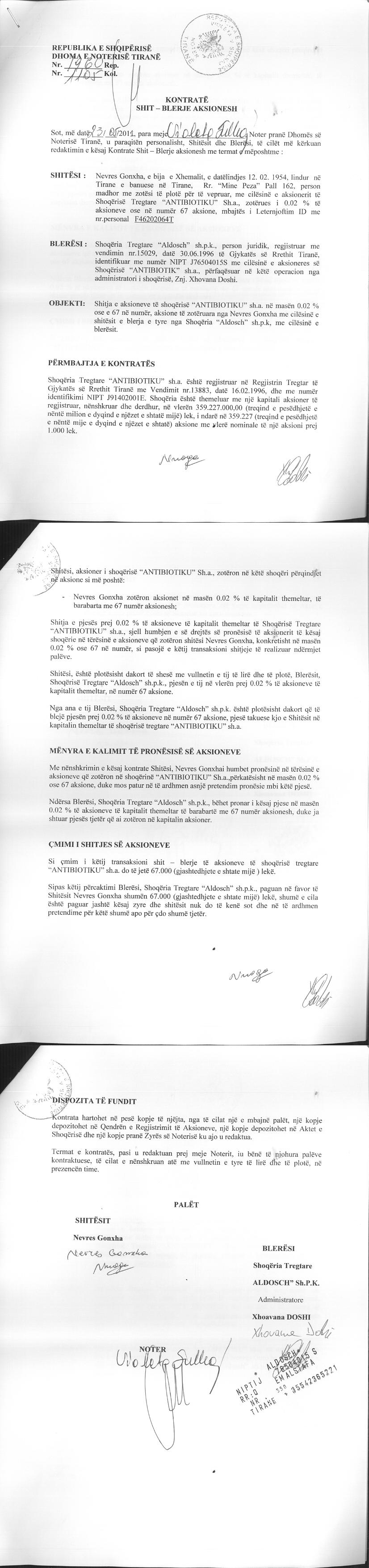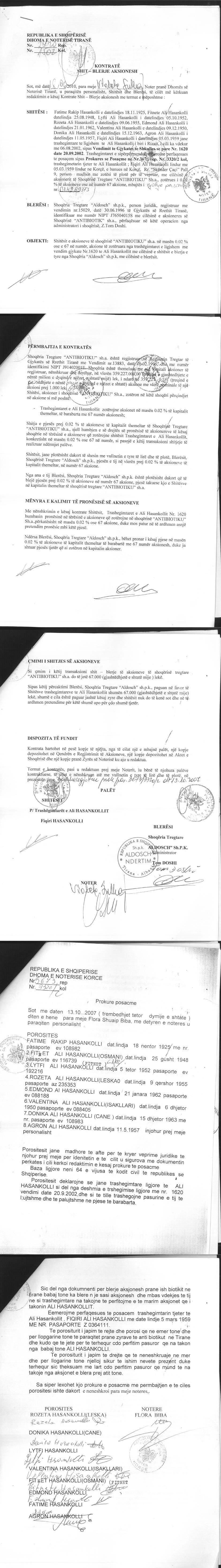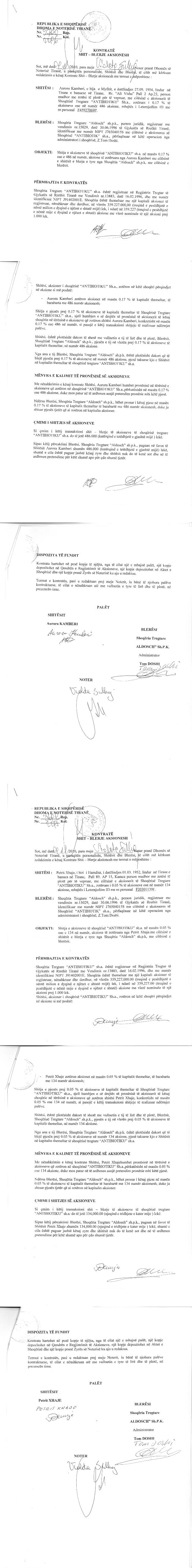 | Shënime: | *Shenim: Te gjithe aksioneret qe kane bere shitblerje aksionesh jane te pasqyruara ne ekstrakt dhe ne kontrata gjithashtu. * Shenim: * Te gjithe ish aksioneret e vegjel sic eshte cituar, jane te pasqyruara ne ekstrakt. |