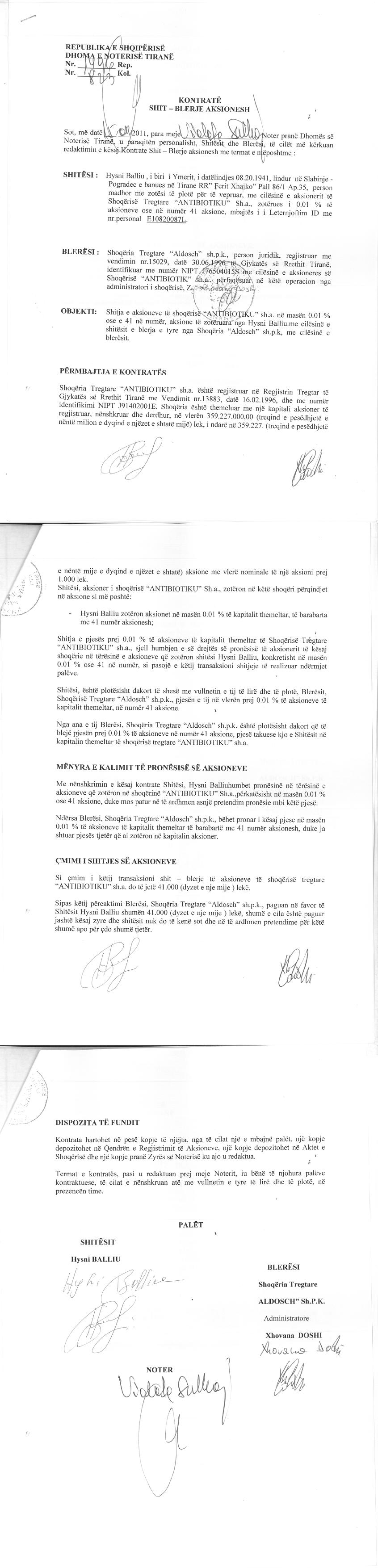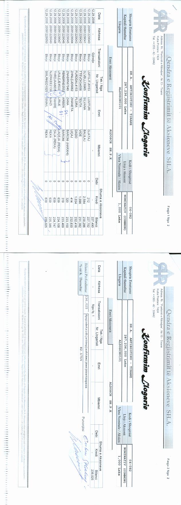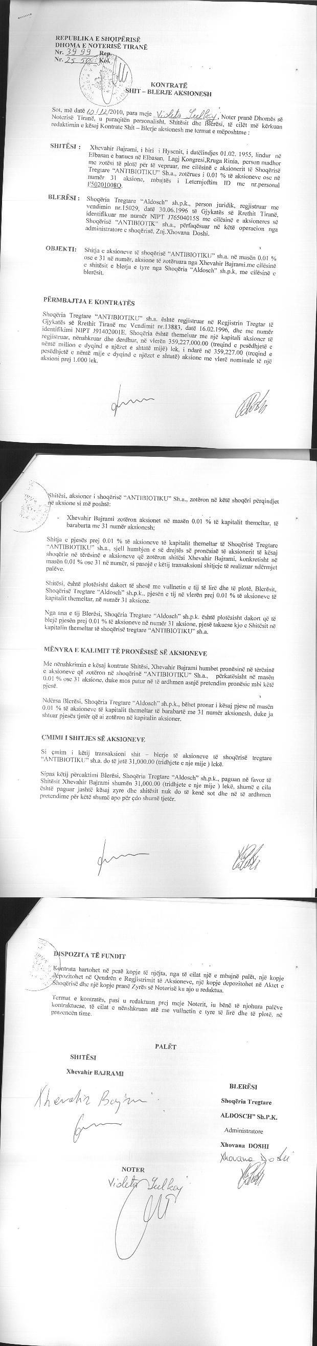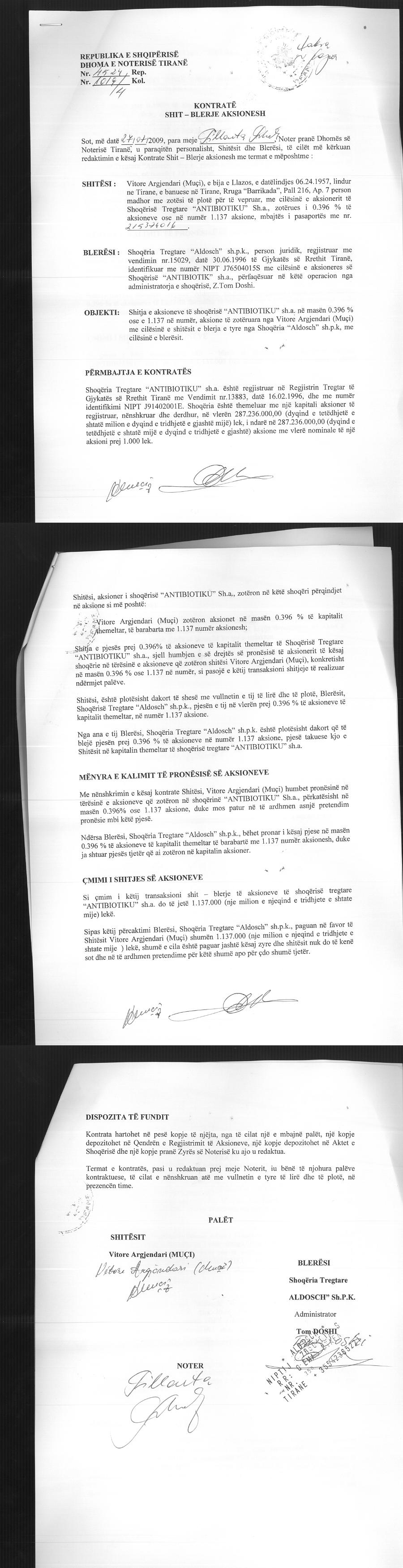 | Shënime: | *Shenim: Te gjithe aksioneret qe kane bere shitblerje aksionesh jane te pasqyruara ne ekstrakt dhe ne kontrata gjithashtu. * Shenim: * Te gjithe ish aksioneret e vegjel sic eshte cituar, jane te pasqyruara ne ekstrakt. |