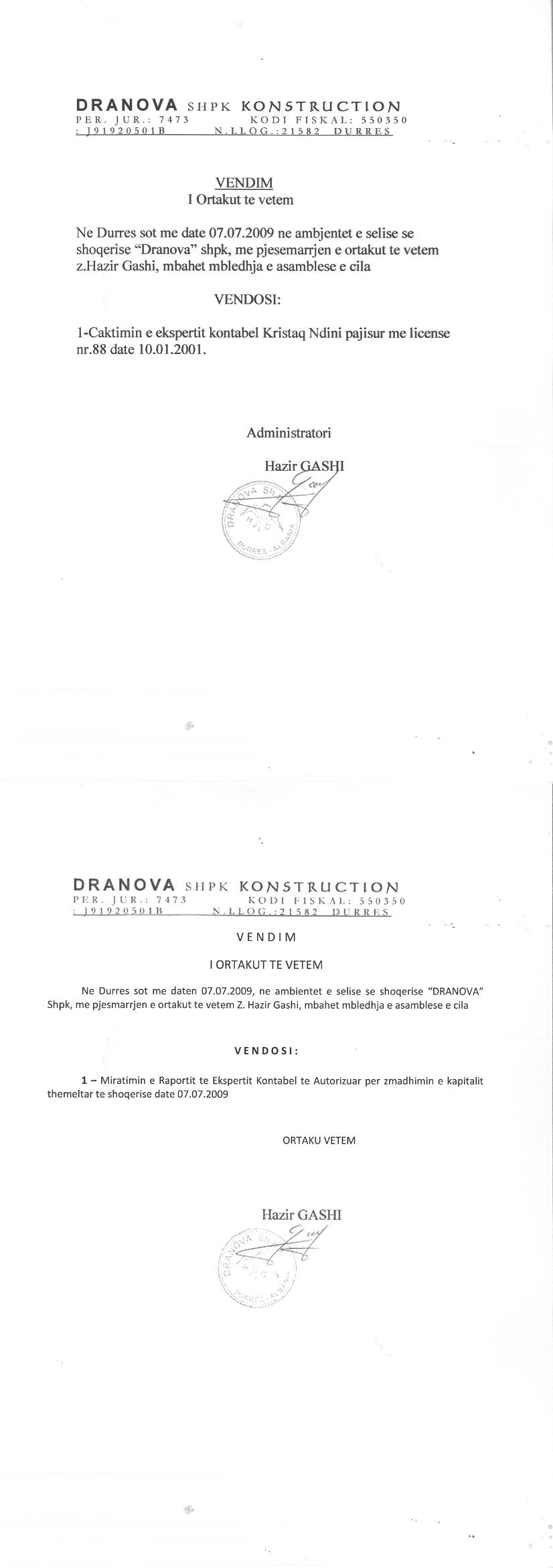 | Emërtime të tjera Tregtare: | DRANOVA SHPK |
