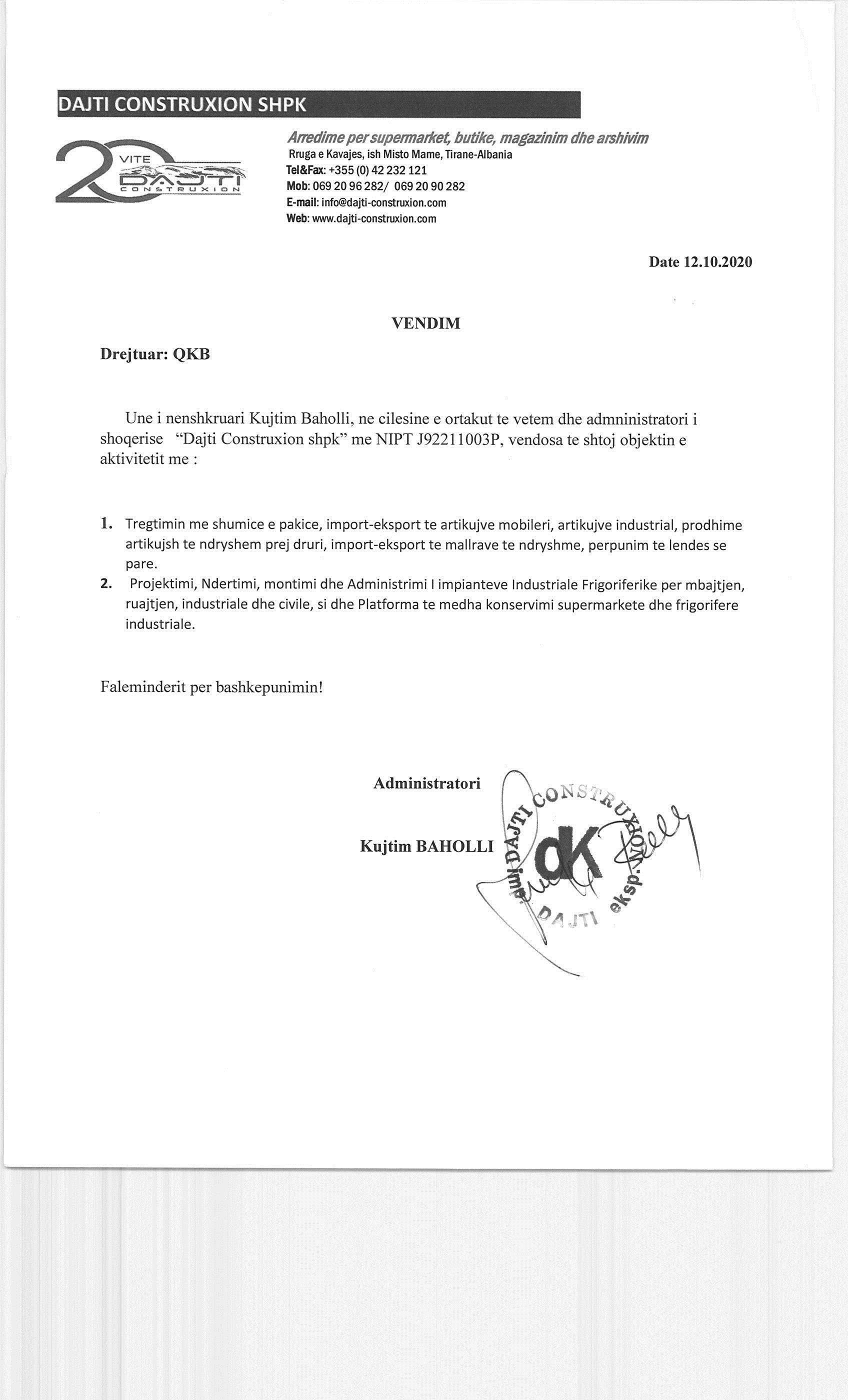 | Emërtime të tjera Tregtare: | DAJTI CONSTRUXION |