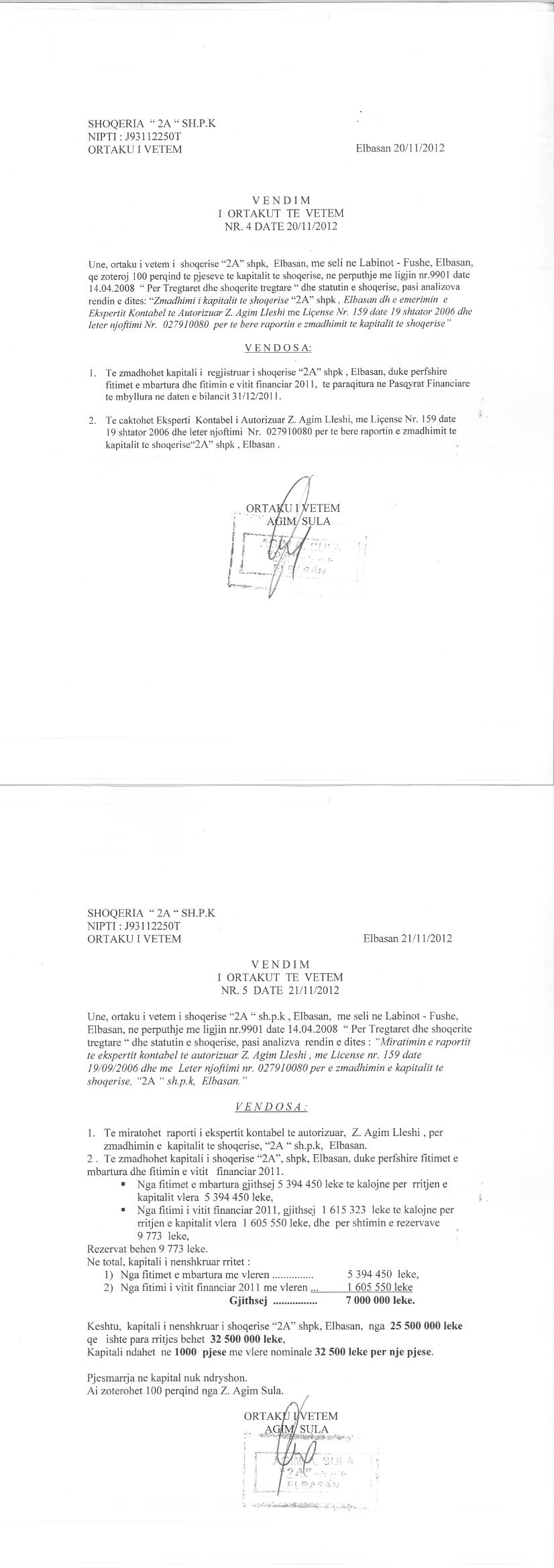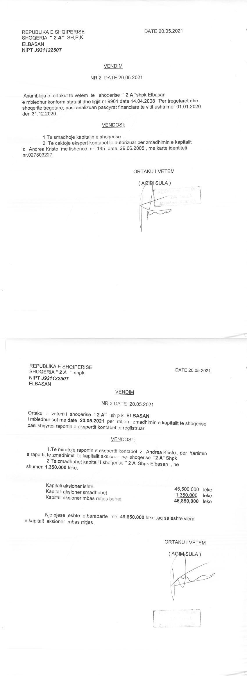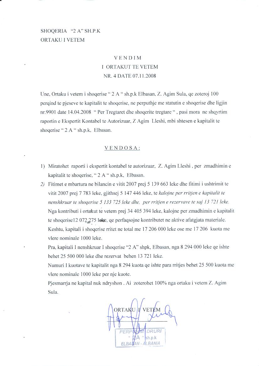 → Ekstrakt historik i regjistrit tregtar date 16.02.2022 → Vendimi i ortakut te vetem per zmadhimin e kapitalit date 16.02.2022 → Vendimi i ortakut te vetem per zmadhimin e kapitalit date 07.11.2008 → Vendimi i ortakut te vetem per zmadhimin e kapitalit date 20.05.2011 |