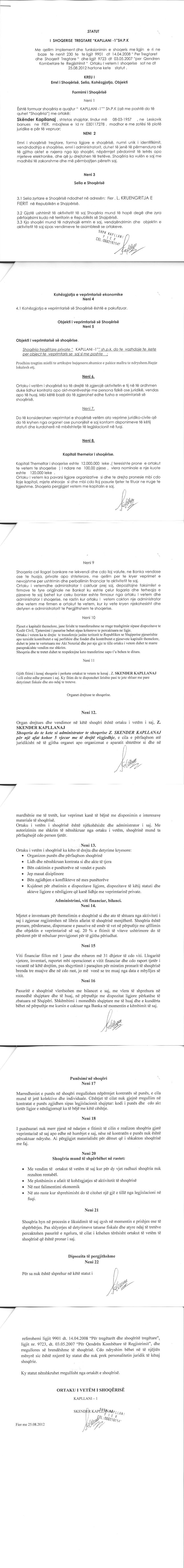 → Ekstrakti Historik i Regjistrit Tregtar date 05.11.2021 → Statuti i Shoqerise → Vendim per rritjen e kapitalit date 28.12.2005 |