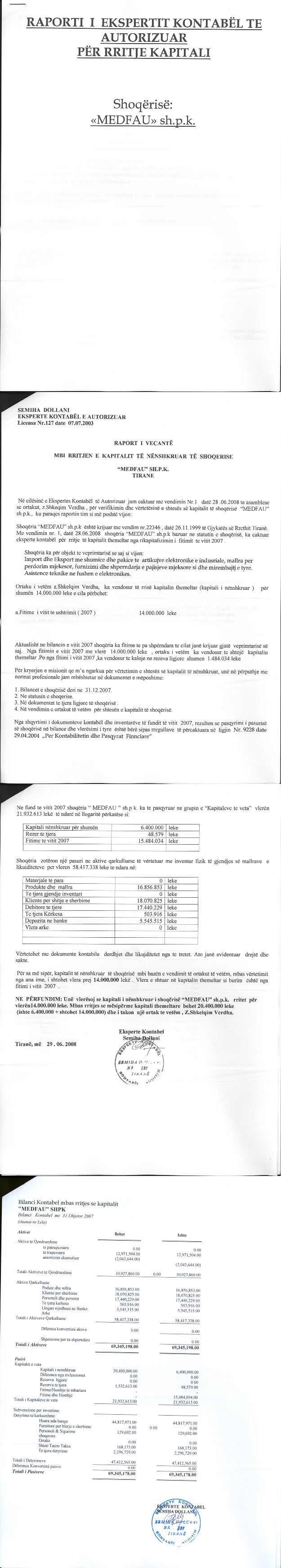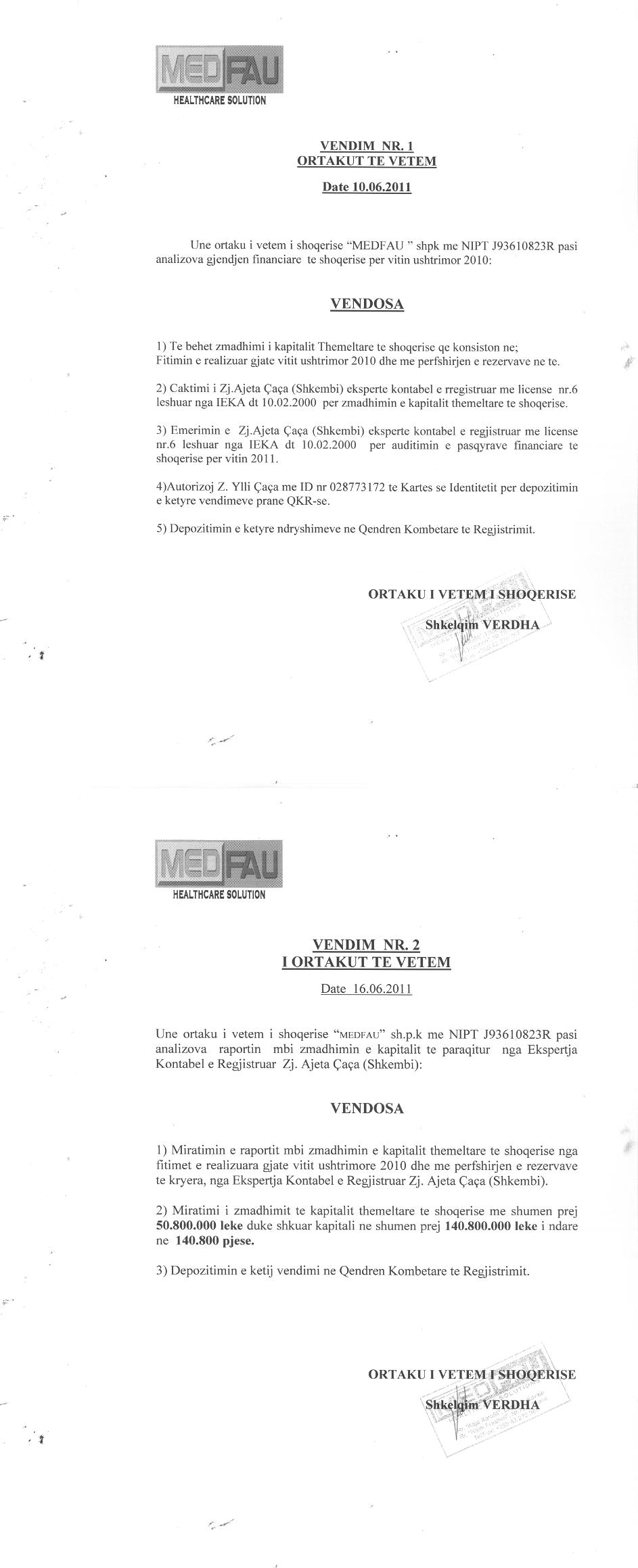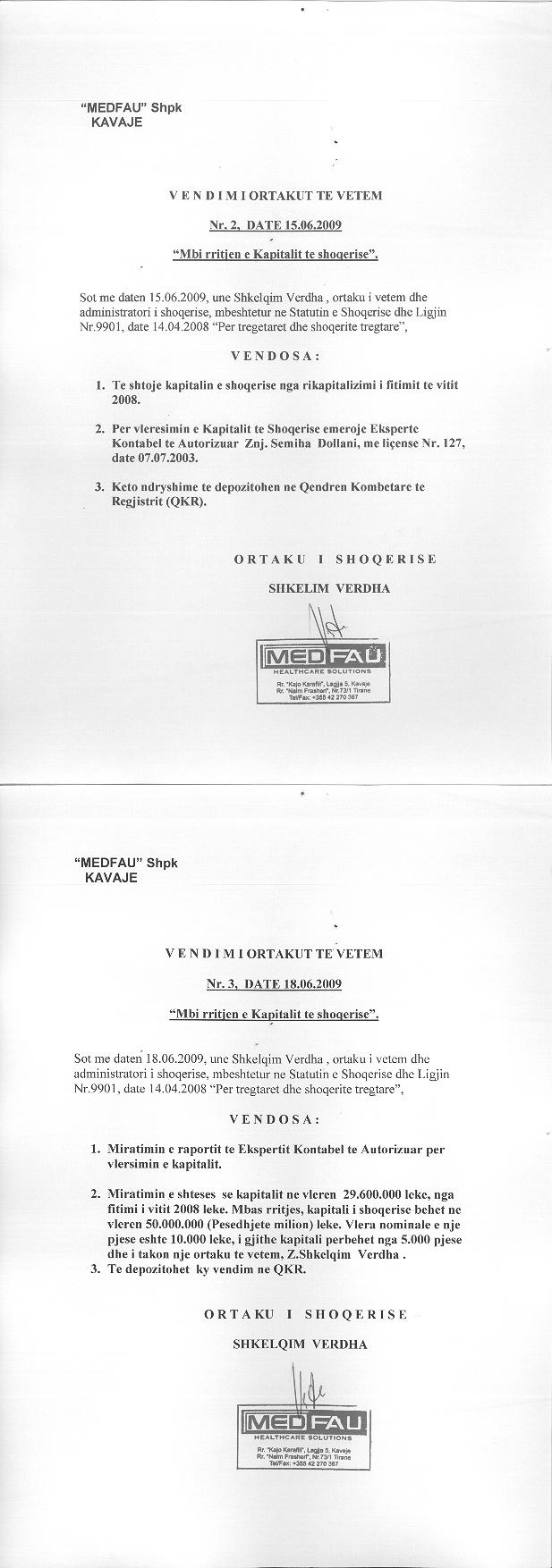 → Ekstrakti Historik i Regjistrit Tregtar date 22.07.2022 → Akt themelimi dhe Statuti i Shoqerise → Vendim i Ortakut te Vetem, Zmadhim Kapitali date 29.06.2006 → Raport Zmadhim Kapitali date 28.06.2008 → Vendim i Ortakut te Vetem, Zmadhim Kapitali date 18.06.2009 → Vendim i Ortakut te Vetem, Zmadhim Kapitali date 16.06.2010 → Vendim i Ortakut te Vetem, Zmadhim Kapitali date 16.06.2011 → Vendim i Ortakut te Vetem, Zmadhim Kapitali date 30.06.2012 → Vendim i Ortakut te Vetem, Zmadhim Kapitali date 24.06.2013 → Ekstrakt historik i regjistrit tregtar date 08.12.2025 |