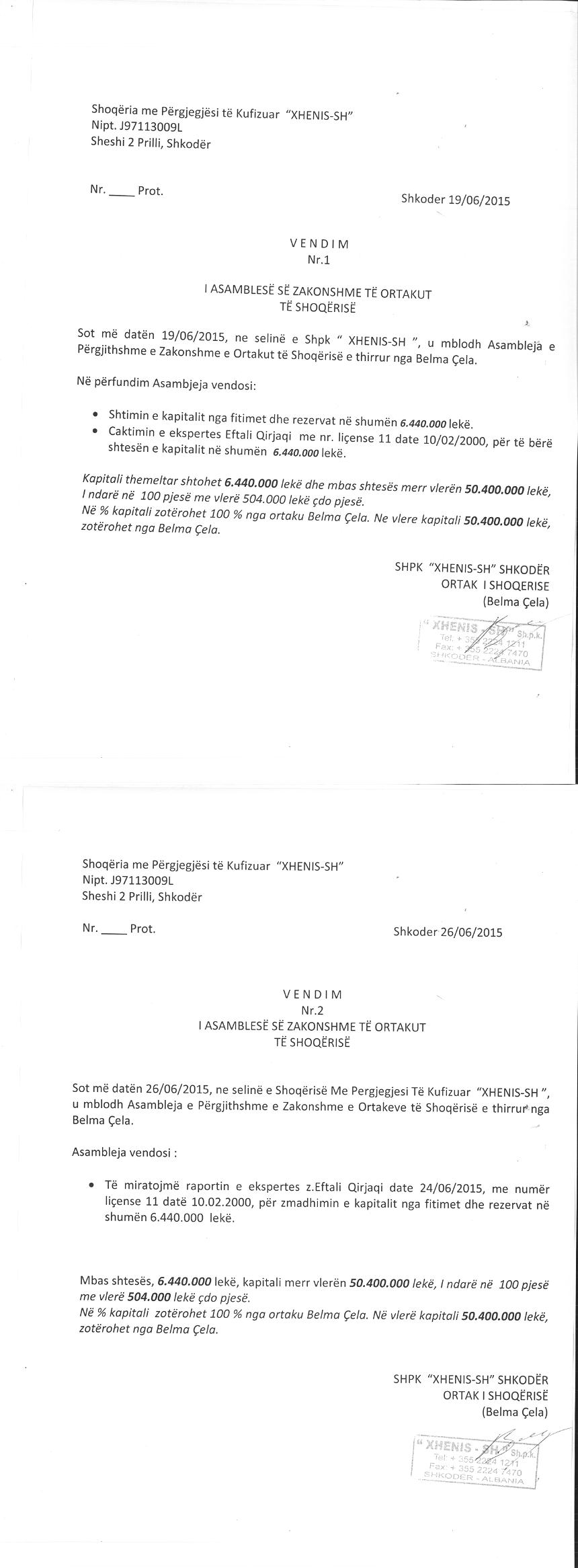 → Ekstrakt Historik i Regjistrit Tregtar date 08.09.2025 → Vendim per Regjistrimin e Shoqerise → Vendim per zmadhimin e kapitalit date 04.10.2006 → Vendim per zmadhimin e kapitalit date 26.09.2006 → Vendim per zmadhimin e kapitalit date 25.06.2009 → Ekstrakt historik i regjistrit tregtar date 25.12.2025 → Akti i dhurimit te kuotave te kapitalit date 19.03.2013 → Vendim i asamblese se ortakut per rritjen e kapitalit date 19.06.2015 → Urdher per venien e sekuestros konservative date 01.08.2016 → Urdher per venien e sekuestros konservative date 01.08.2016 → Vendim per pushimin e ekzekutimit date 04.08.2016 → Vendim i asamblese se ortakeve per shtimin e kapitalit date 26.03.2023 → Vendim KKT Nr. 20, dt. 04.10.2024, Leje ndërtimi për restaurimin e “Kafes së Madhe” dhe hoteleri 3+1 kate, Shkodër → Harta e Planvendosjes Vendim KKT Nr. 20, dt. 04.10.2024 |