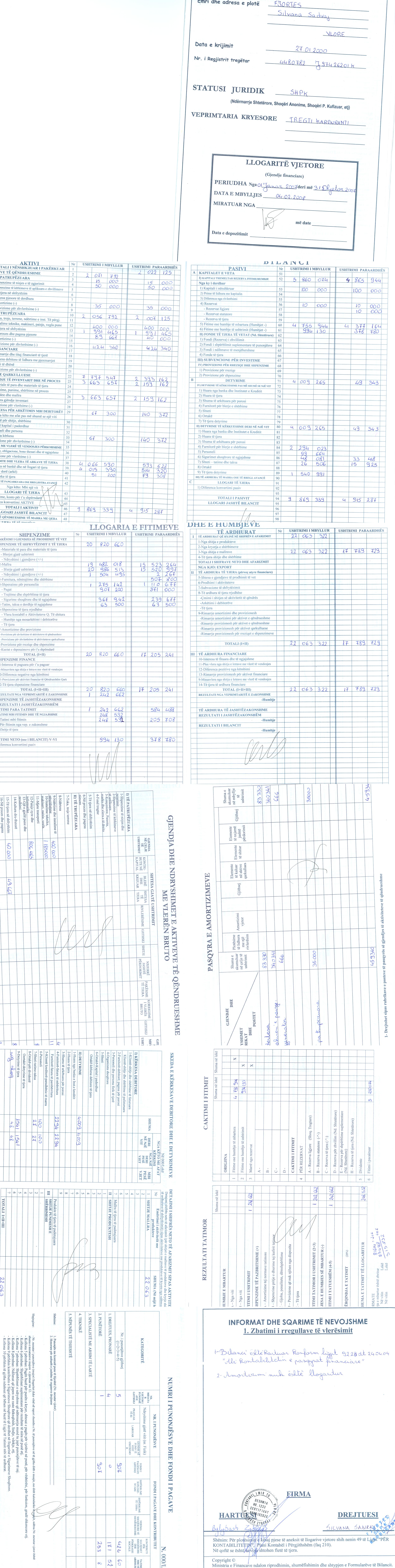 Xhiro Vjetore(Lekë) 2022:279 620 934,00 Xhiro Vjetore(Lekë) 2021:266 852 252,00 Xhiro Vjetore(Lekë) 2020:254 313 411,00 Xhiro Vjetore(Lekë) 2019:371 521 705,00 Xhiro Vjetore(Lekë) 2018:271 312 877,00 Xhiro Vjetore(Lekë) 2017:299 830 827,00 Xhiro Vjetore(Lekë) 2016:368 460 777,00 Xhiro Vjetore(Lekë) 2015:263 029 720,00 Xhiro Vjetore(Lekë) 2014: 131 653 161,00 Xhiro Vjetore(Lekë) 2013: 127 419 457,00 Xhiro Vjetore(Lekë) 2012: 105 559 294,00 Xhiro Vjetore(Lekë) 2011: 110 445 590,00 Xhiro Vjetore(Lekë) 2008: 29 875 195,00 Xhiro Vjetore(Lekë) 2007: 22 063 322,00 |