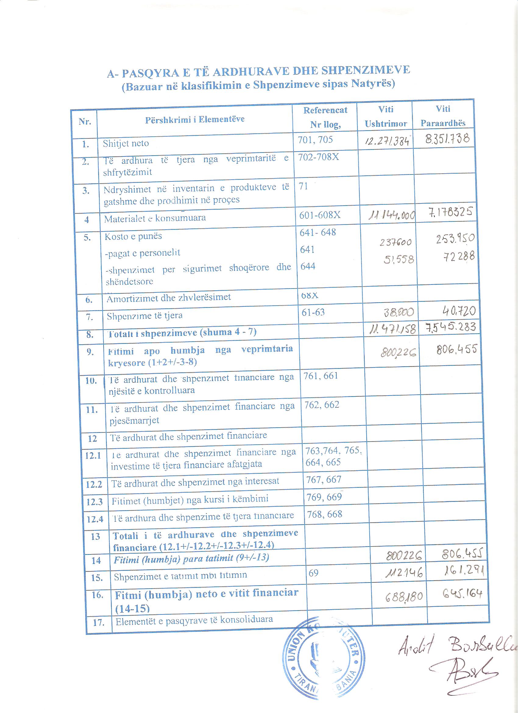 3 782 877,00 Fitimi para Tatimit(Lekë) 2019: 2 665 606,00 Fitimi para Tatimit(Lekë) 2018: 2 621 129,00 Fitimi para Tatimit(Lekë) 2017: 4 937 145,00 Fitimi para Tatimit(Lekë) 2016: 3 779 325,00 Fitimi para Tatimit(Lekë) 2015: 2 160 904,00 Fitimi para Tatimit(Lekë) 2014: 3 221 578,00 Fitimi para Tatimit(Lekë) 2013: 3 371 948,00 Fitimi para Tatimit(Lekë) 2012: 1 330 919,00 Fitimi para Tatimit(Lekë) 2011: 1 383 832,00 Fitimi para Tatimit(Lekë) 2010: 1 743 170,00 Fitimi para Tatimit(Lekë) 2008: 800 226,00 Fitimi para Tatimit(Lekë) 2007: 806 456,00 |