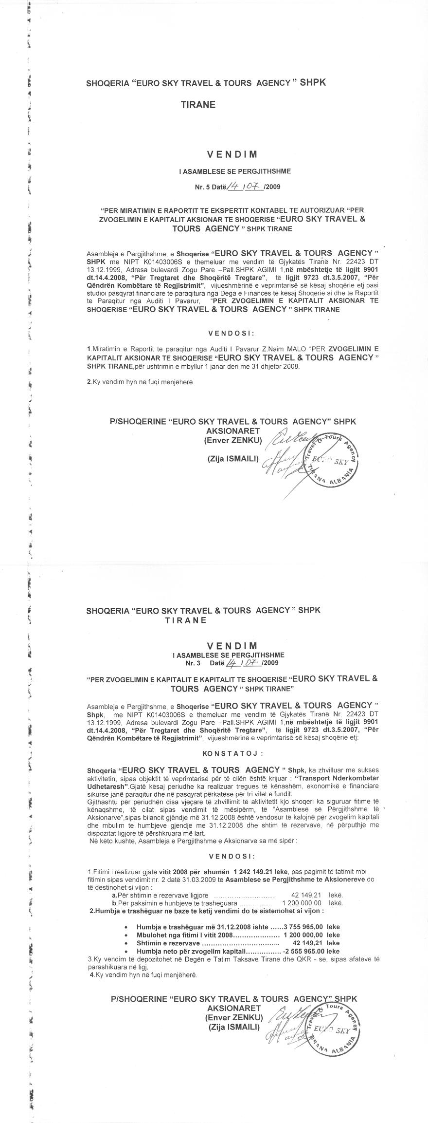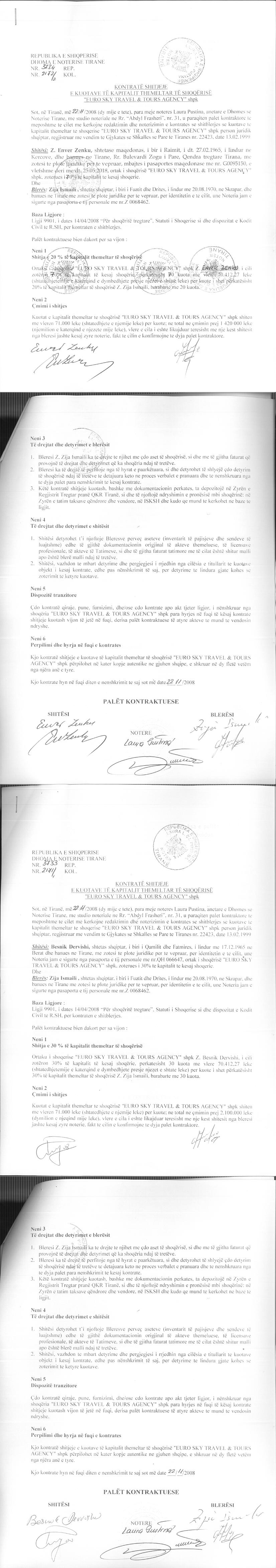 → Ekstrakt Historik i Regjistrit Tregtar date 30.08.2025 → Akt themelimi dhe Statuti i Shoqerise → Dokumente të Ndryshme → Kontratë Shitje Kuotash datë 23.04.2001 → Kontratë Shitje Kuotash datë 08.01.2003 → Vendim i Asamblesë së Ortakëve për Zmadhimin e Kapitalit datë 30.06.2005 → Vendim i Asamblesë së Ortakëve për Zmadhimin e Kapitalit datë 18.07.2005 → Vendim i Asamblesë së Ortakëve për Zmadhimin e Kapitalit datë 23.04.2007 → Kontratë Shitje Kuotash datë 22.11.2008 → Vendim i Asamblesë së Ortakëve për Zvogëlimin e Kapitalit datë 14.07.2009 |