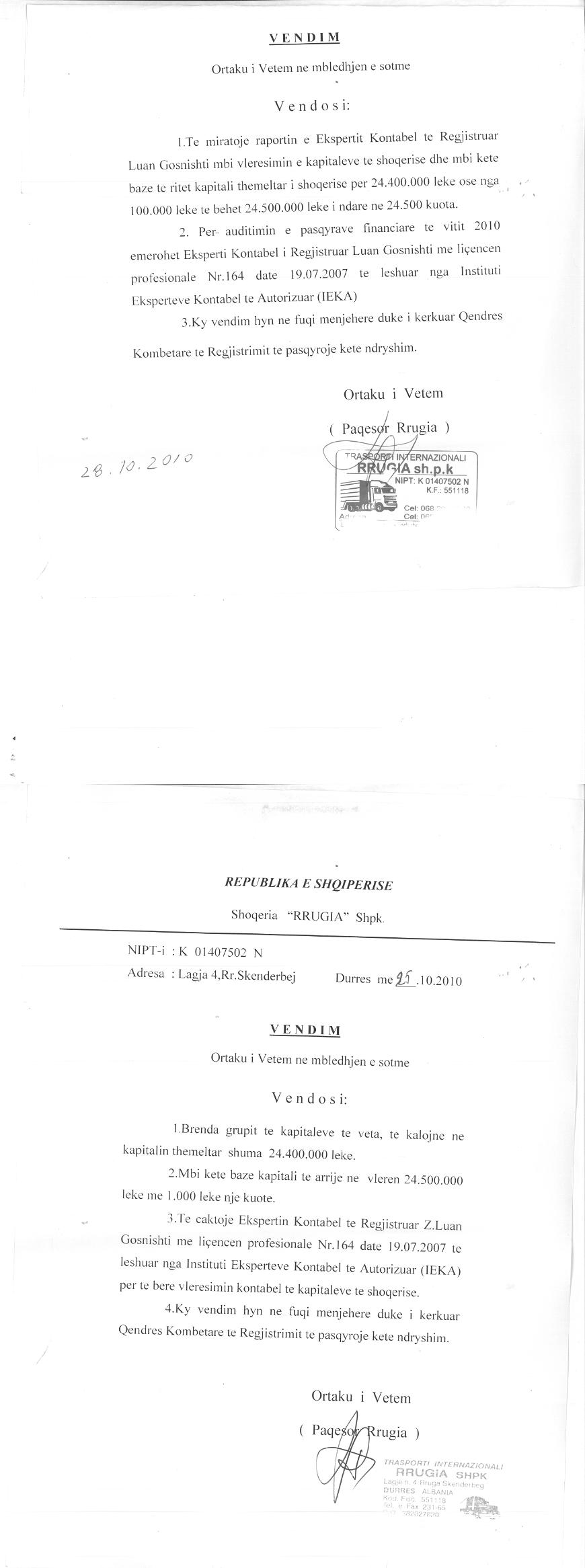 → Ekstrakti Historik i Regjistrit Tregtar date 02.02.2022 → Statuti i Shoqerise → Vendim i ortakut te vetëm date 28.10.2010 → Vendim i asamblese se pergjithshme date 02.03.2020 |